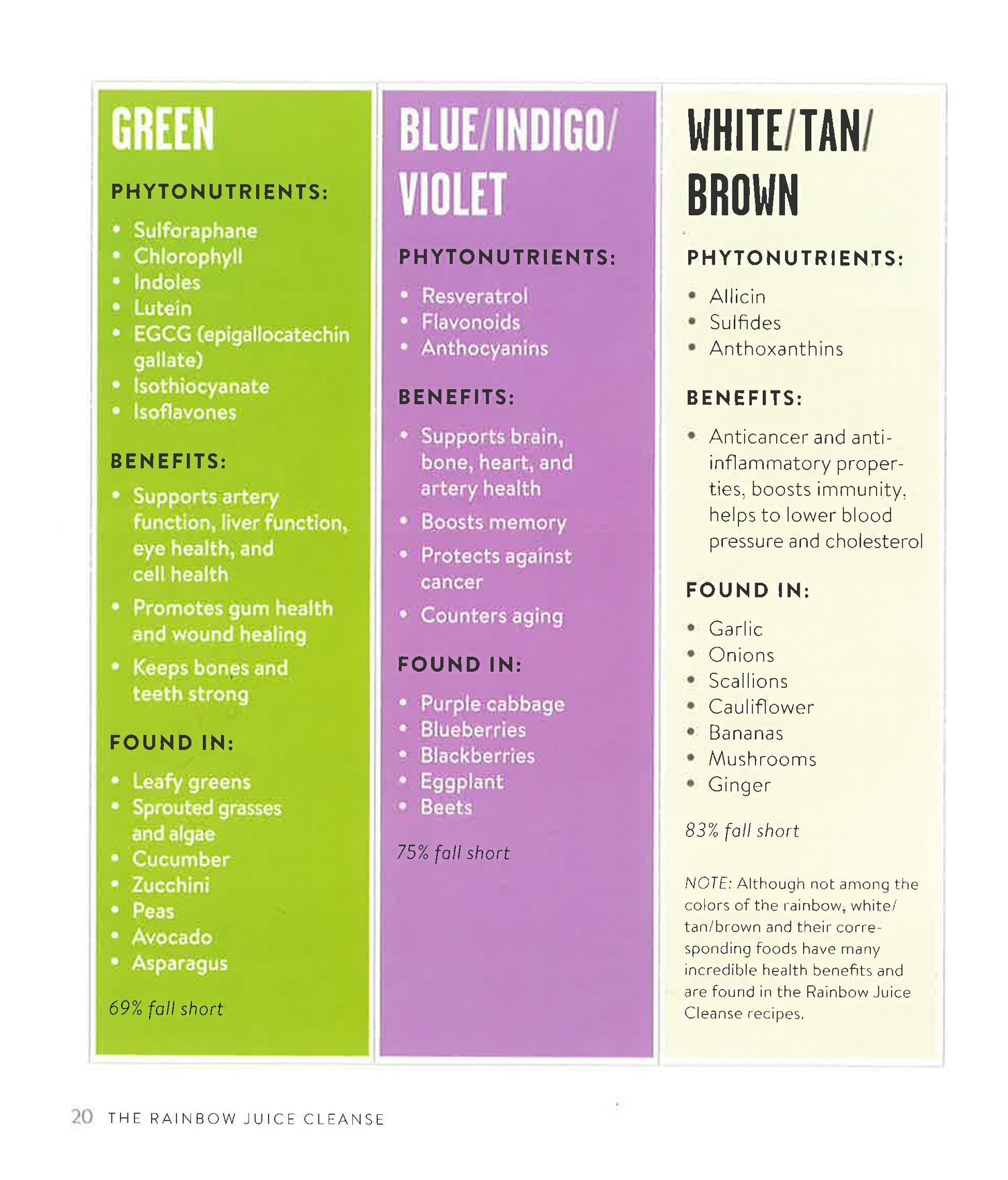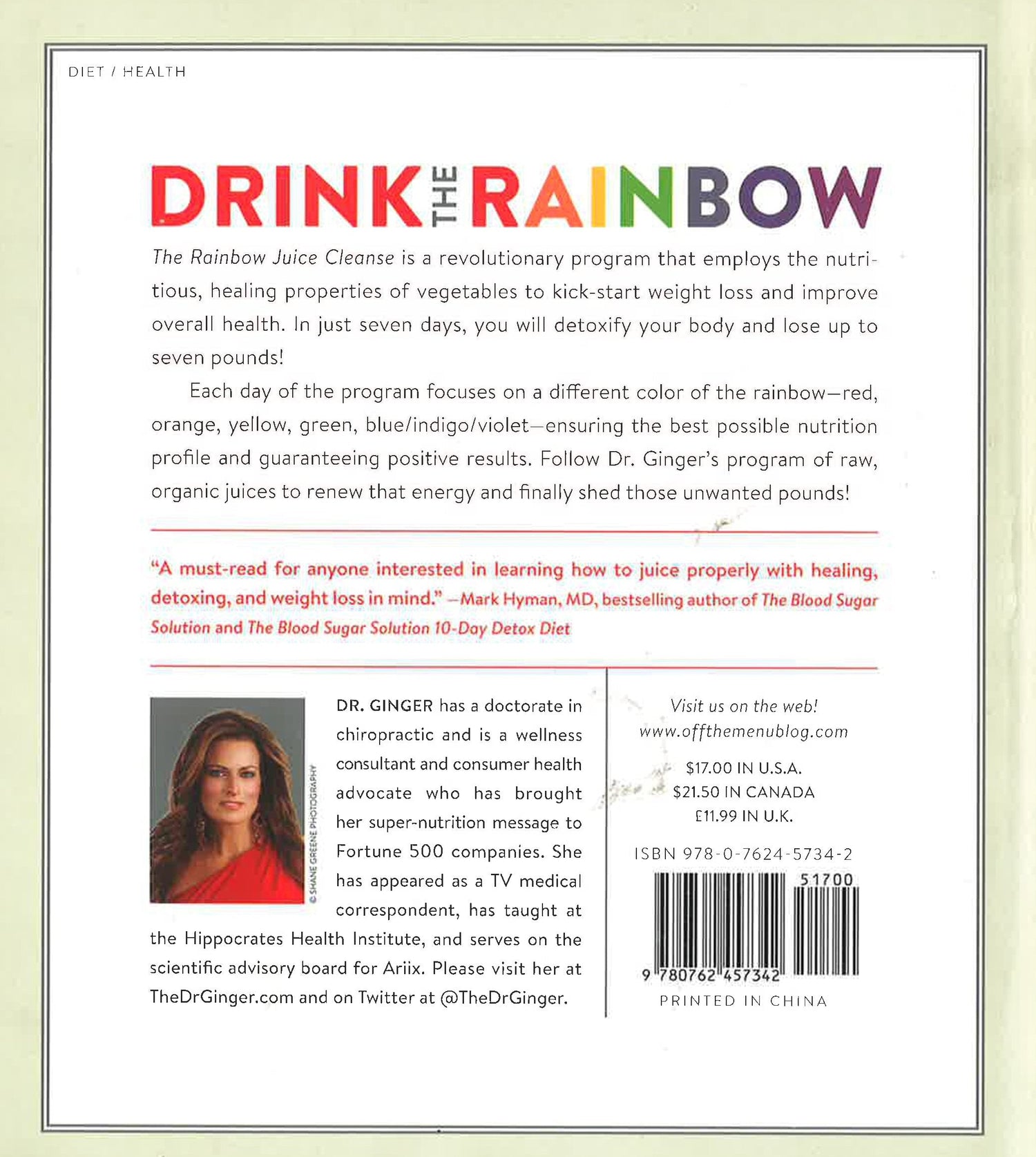 The Rainbow Juice Cleanse is a revolutionary program that employs the nutritious, healing properties of a rainbow of vegetables to kick start weight loss and improve overall health. While most juicing books include recipes for high-sugar fruits, Dr. Ginger explains that most fruits can actually ruin a detox for people looking to lose weight or for anyone who has diabetes or blood sugar issues. Instead, Dr. Ginger shows readers how to properly shop the rainbow" of produce with a plan that entails consuming red, orange, yellow, green, blue, indigo, and violet fresh, raw, organic juices. In just seven days, readers will detoxify their bodies and lose up to seven pounds of fat! Each day of the program focuses on a different colour of the rainbow, ensuring the best possible nutrition profile and guaranteeing positive results. By drinking the rainbow," readers will shed pounds and experience anti-aging, renewed energy, and a better balanced body. Also included are 50 food and juicing recipes and 20 full-colour photos.