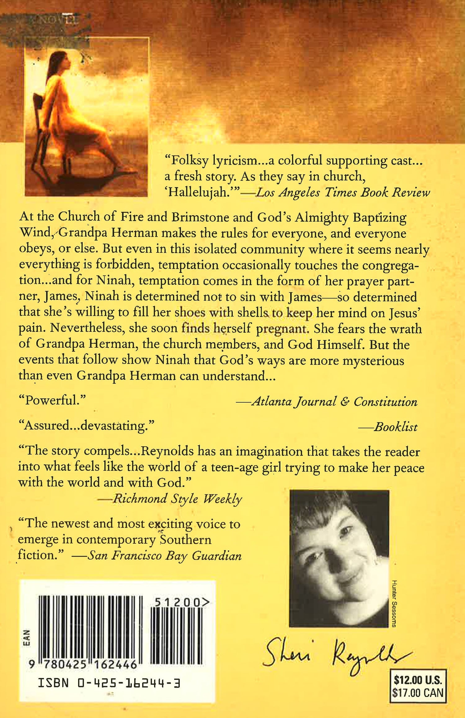 At the Church of Fire and Brimstone and God's Almighty Baptizing Wind, Grandpa Herman makes the rules for everyone, and everyone obeys, or else. Try as she might, Ninah hasn't succeeded in resisting temptation -- her prayer partner, James -- and finds herself pregnant. She fears the wrath of Grandpa Herman, the congregation and of God Himself. But the events that follow show Ninah that God's ways are more mysterious than even Grandpa Herman understands . . .