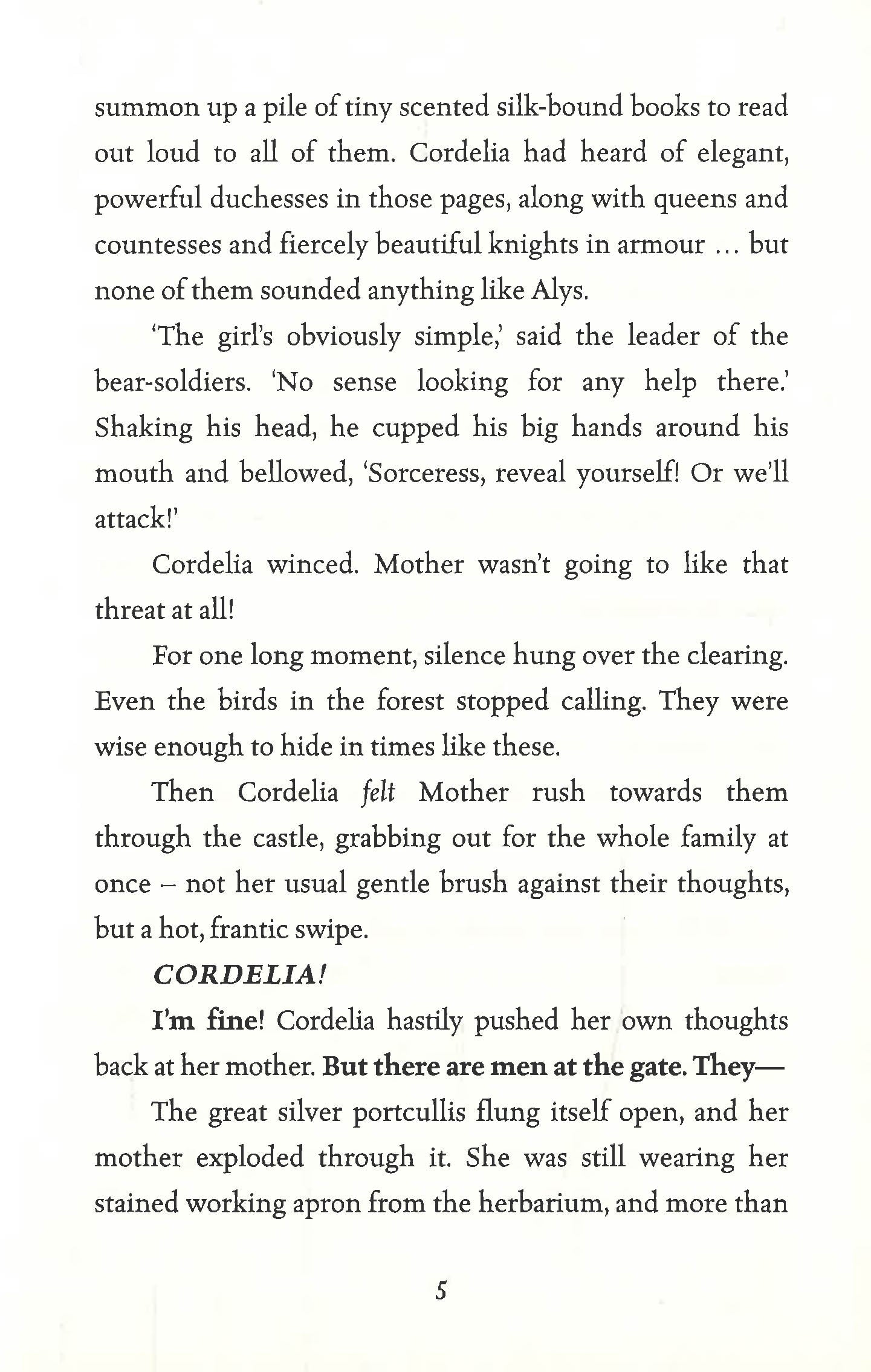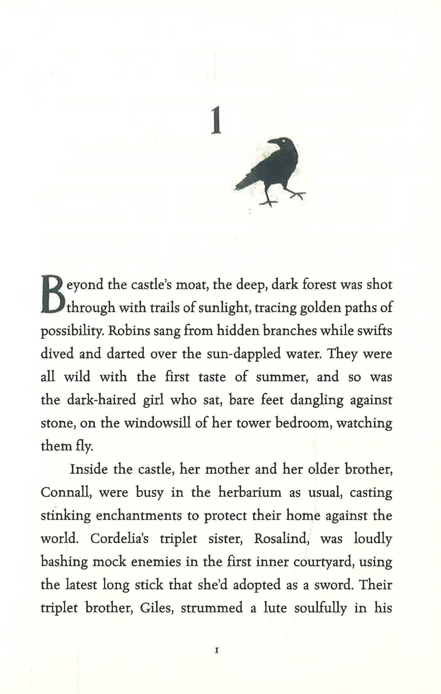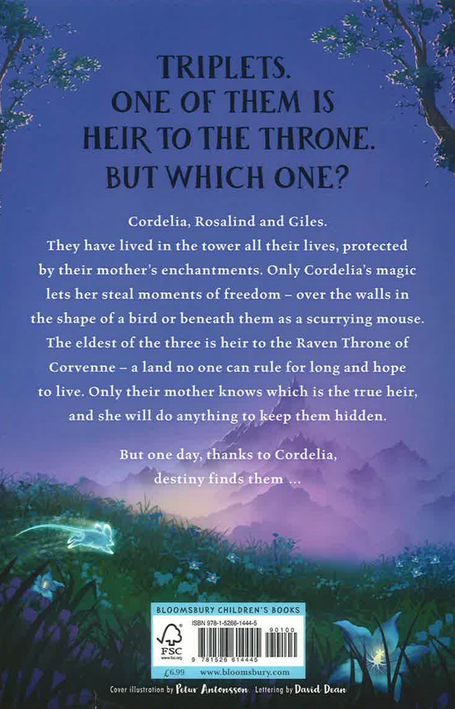 Cordelia and her triplets Rosalind and Giles have lived safely in the castle at the centre of the forest all their lives, protected by the spells their mother has woven. The only time Cordelia feels truly free is when she turns into a dragonfly or a blackbird and can fly beyond the great stone walls. But then one day the outside world comes to them. Two rival dukes and their soldiers have come for the triplets – because whoever is the eldest is the heir to the throne. But their mother knows that since the Raven Crown was broken, no one has been able to rule the kingdom of Corvenne and live, and she will not give up any of her children to that death sentence. When she refuses to reveal which child is the eldest, she is taken prisoner, and Cordelia and her brother and sister find themselves on the run in a dangerous new world. And as they set out across Corvenne to rescue their mother, Cordelia begins to see that there is a deep magic at work, driving her towards a destiny that could tear her family apart, take away her freedom forever or, just maybe, heal a kingdom devastated by a war that has raged for generations.