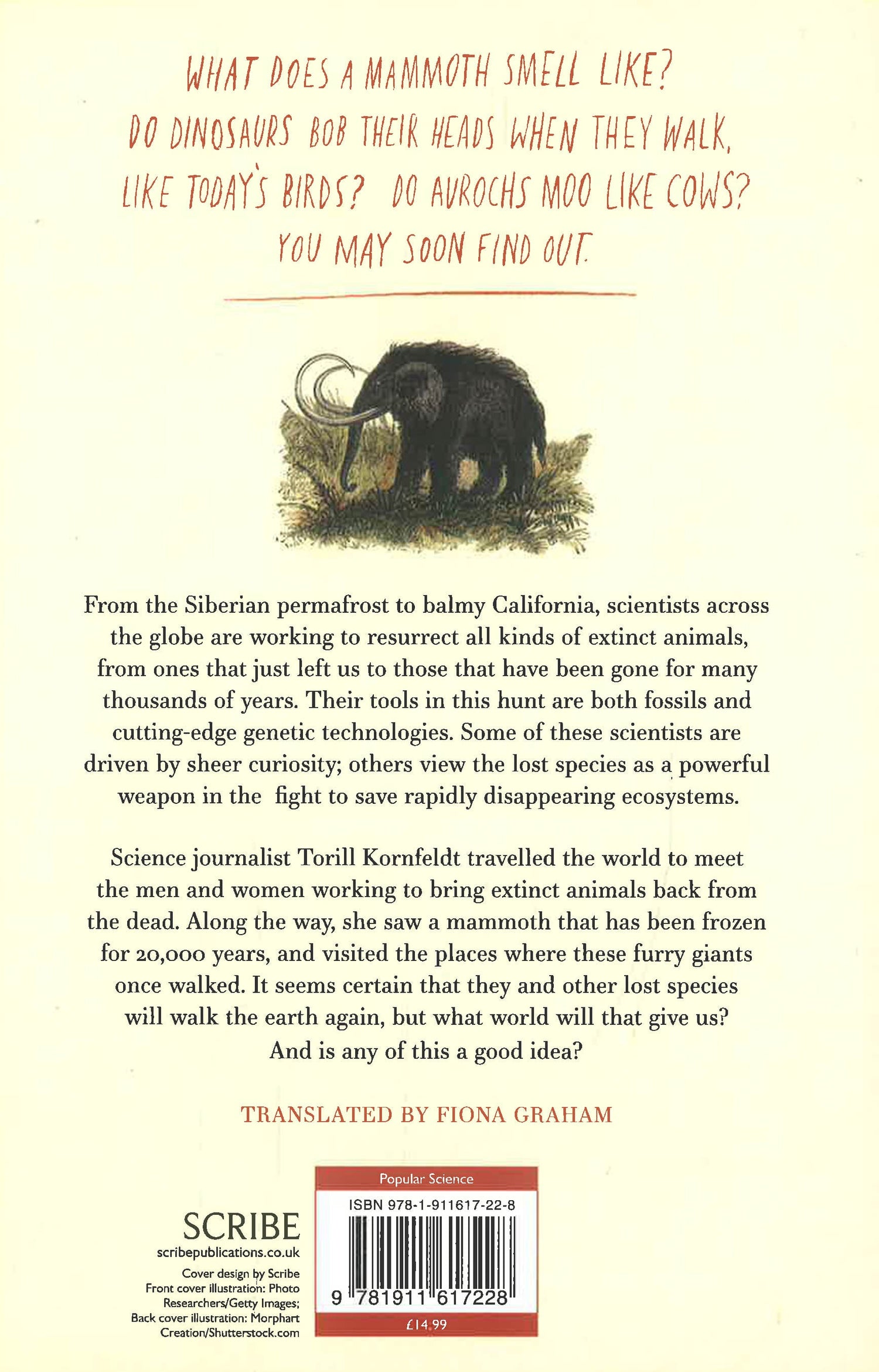 Science journalist Torill Kornfeldt travelled the world to meet the men and women working to bring extinct animals back from the dead. Along the way, she saw a mammoth that has been frozen for 20,000 years, and visited the places where these furry giants once walked. It seems certain that they and other lost species will walk the earth again, but what world will that give us? And is any of this a good idea?