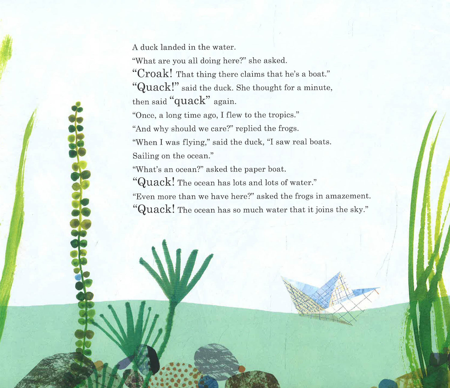 When the paper boat learns that there is such a place as the ocean, he is determinded to go there so he can be a real boat. On his journey he meets all sorts of friends, from the strong little tug boat to the glittering ocean liner. But he also learns that the real ocean is huge and deep and full of dangers. The lyrical text and illustrations of this modern fable create a world of wonder.