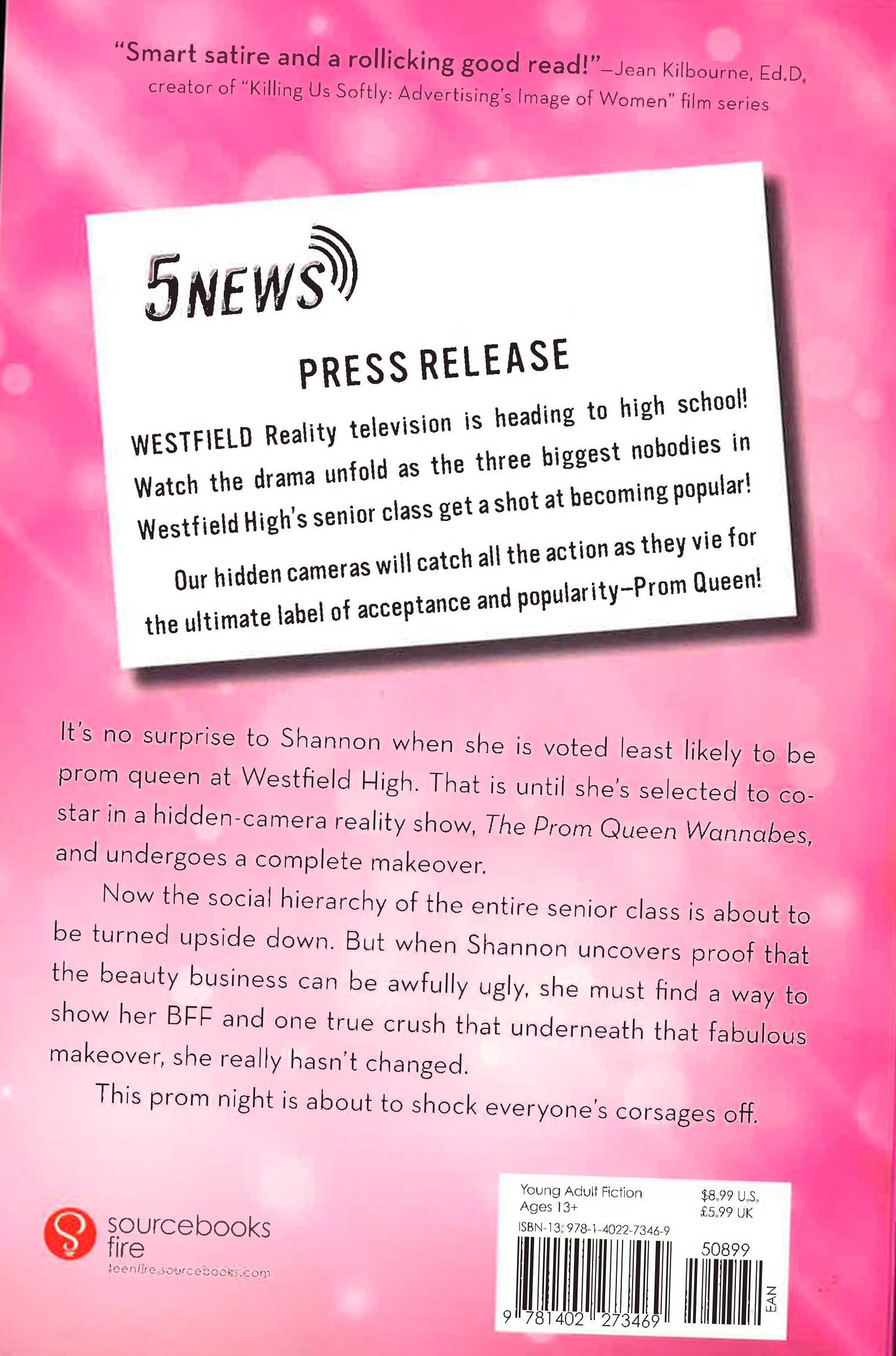 WESTFIELD Reality television is heading to high school! Watch the drama unfold as the three biggest nobodies in Westfield High's senior calls get a shot at becoming popular! Our hidden cameras will catch all the action as they vie for the ultimate label of acceptance and popularity--Prom Queen! It's no surprise to Shannon when she is voted least likely to be prom queen at Westfield High. That is until she's selected to co-star in a hidden-camera reality show, The Prom Queen Wannabes, and undergoes a complete makeover. Now the social hierarchy of the entire senior class is about to be turned upside down. But when Shannon uncovers proof that the beauty business can be awfully ugly, she must find a way to show her BFF and one true crush that underneath the fabulous makeover, she really hasn't changed. This prom night is about to shock everyone's corsages off.