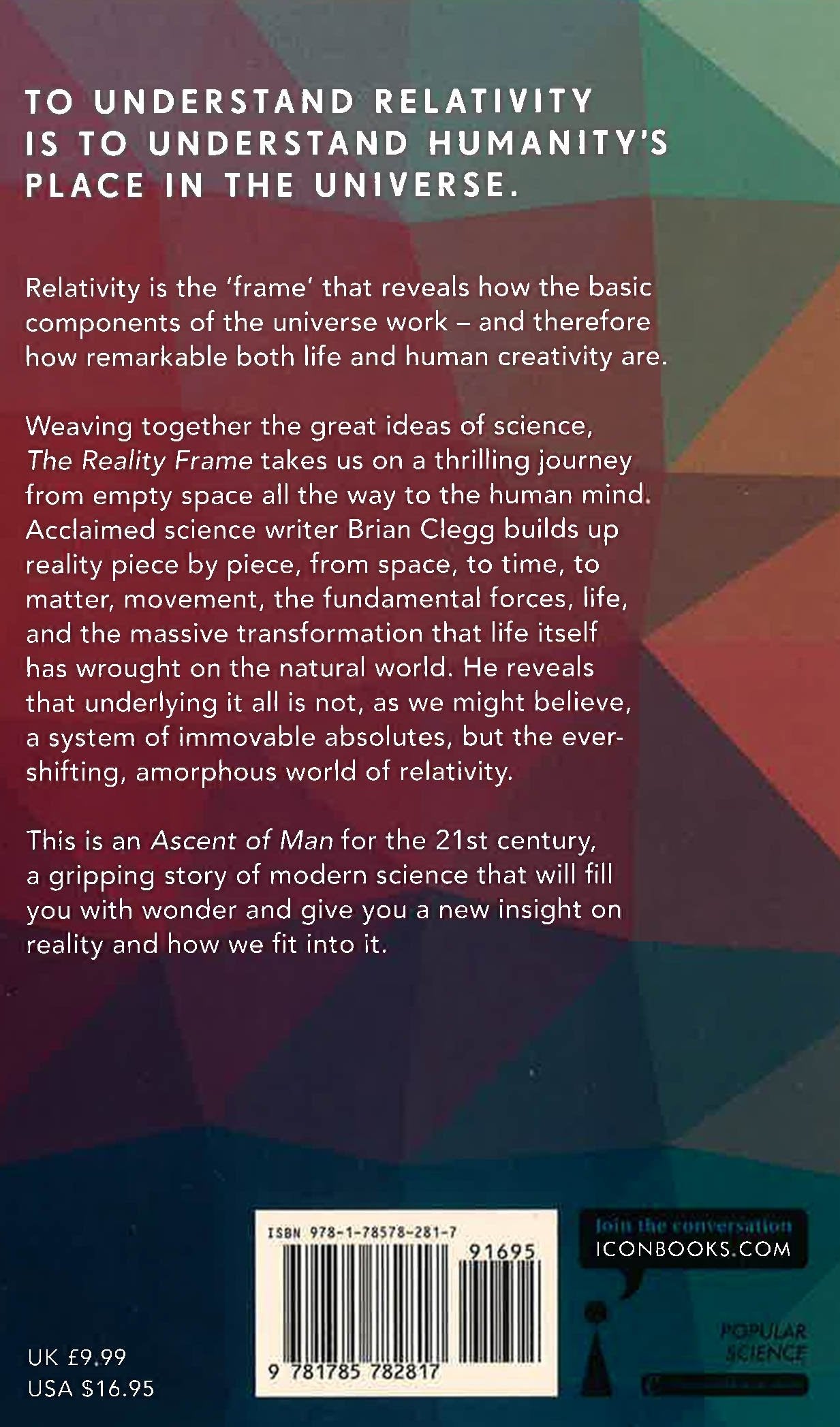 Weaving together the great ideas of science, in this, his magnum opus, Brian Clegg builds up reality piece by piece, from space, to time, to matter, movement, the fundamental forces, life, and the massive transformation that life itself has wrought on the natural world. He reveals that underlying it all is not, as we might believe, a system of immovable absolutes, but the ever-shifting, amorphous world of relativity. From religion to philosophy, humanity has traditionally sought out absolutes to explain the world around us, but as science has developed, relativity has swept away many of these certainties, leaving only a handful of unchangeable essentials - such as absolute zero, nothingness, light - leading to better science and a new understanding of the essence of being human. This is an Ascent of Man for the 21st century, the gripping story of modern science that will fill you with wonder and give you a new insight into our place in the universe.