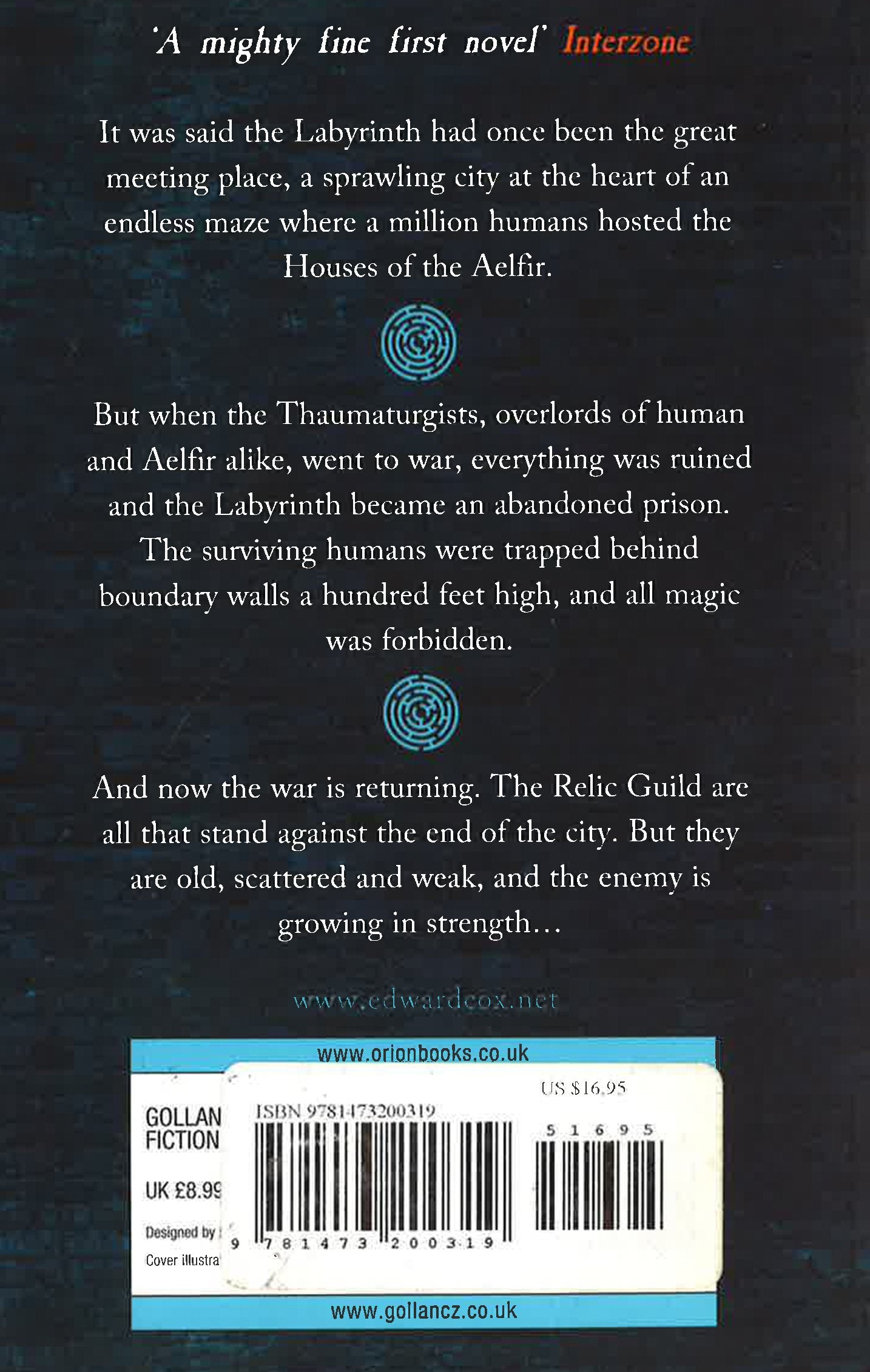 Magic caused the war. Magic is forbidden. Magic will save us. It was said the Labyrinth had once been the great meeting place, a sprawling city at the heart of an endless maze where a million humans hosted the Houses of the Aelfir. The Aelfir who had brought trade and riches, and a future full of promise. But when the Thaumaturgists, overlords of human and Aelfir alike, went to war, everything was ruined and the Labyrinth became an abandoned forbidden zone, where humans were trapped behind boundary walls 100 feet high. Now the Aelfir are a distant memory and the Thaumaturgists have faded into myth. Young Clara struggles to survive in a dangerous and dysfunctional city, where eyes are keen, nights are long, and the use of magic is punishable by death. She hides in the shadows, fearful that someone will discover she is touched by magic. She knows her days are numbered. But when a strange man named Fabian Moor returns to the Labyrinth, Clara learns that magic serves a higher purpose and that some myths are much more deadly in the flesh. The only people Clara can trust are the Relic Guild, a secret band of magickers sworn to protect the Labyrinth. But the Relic Guild are now too few. To truly defeat their old nemesis Moor, mightier help will be required. To save the Labyrinth - and the lives of one million humans - Clara and the Relic Guild must find a way to contact the worlds beyond their walls. *This book may have a remainder mark