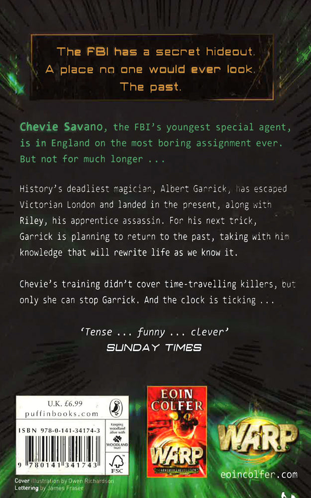 As Garrick relentlessly hunts them down, Riley and Chevie Savano face a desperate race to stay alive and stop Garrick from returning to his own time - armed with knowledge and power that could change the world forever. The Matrix meets Oliver Twist, WARP: The Reluctant Assassin is the first of a major new series by Eoin Colfer, the bestselling author of Artemis Fowl.It all began with the FBI and WARP (Witness Anonymous Relocation Programme). Hiding witnesses in the past to protect the future - until now . . .Riley is a Victorian orphan, hurtled into the twenty-first century and on the run from his evil master . . .Albert Garrick, the terrifying assassin-for-hire pursuing Riley through time, along with . . .Chevie Savano, the FBI's youngest and most impulsive special agent.As Garrick relentlessly hunts them down, Riley and Chevie face a desperate race to stay alive and stop Garrick from returning to his own time - armed with knowledge and power that could change the world forever.Colfer has the ability to make you laugh twice over: first in sheer subversive joy at the inventiveness of the writing, and again at the energy of the humour - Sunday TimesReaders mourning the end of the Artemis Fowl series can take heart: this first book in the time-bending WARP series is an all-out blast. - Publishers Weekly