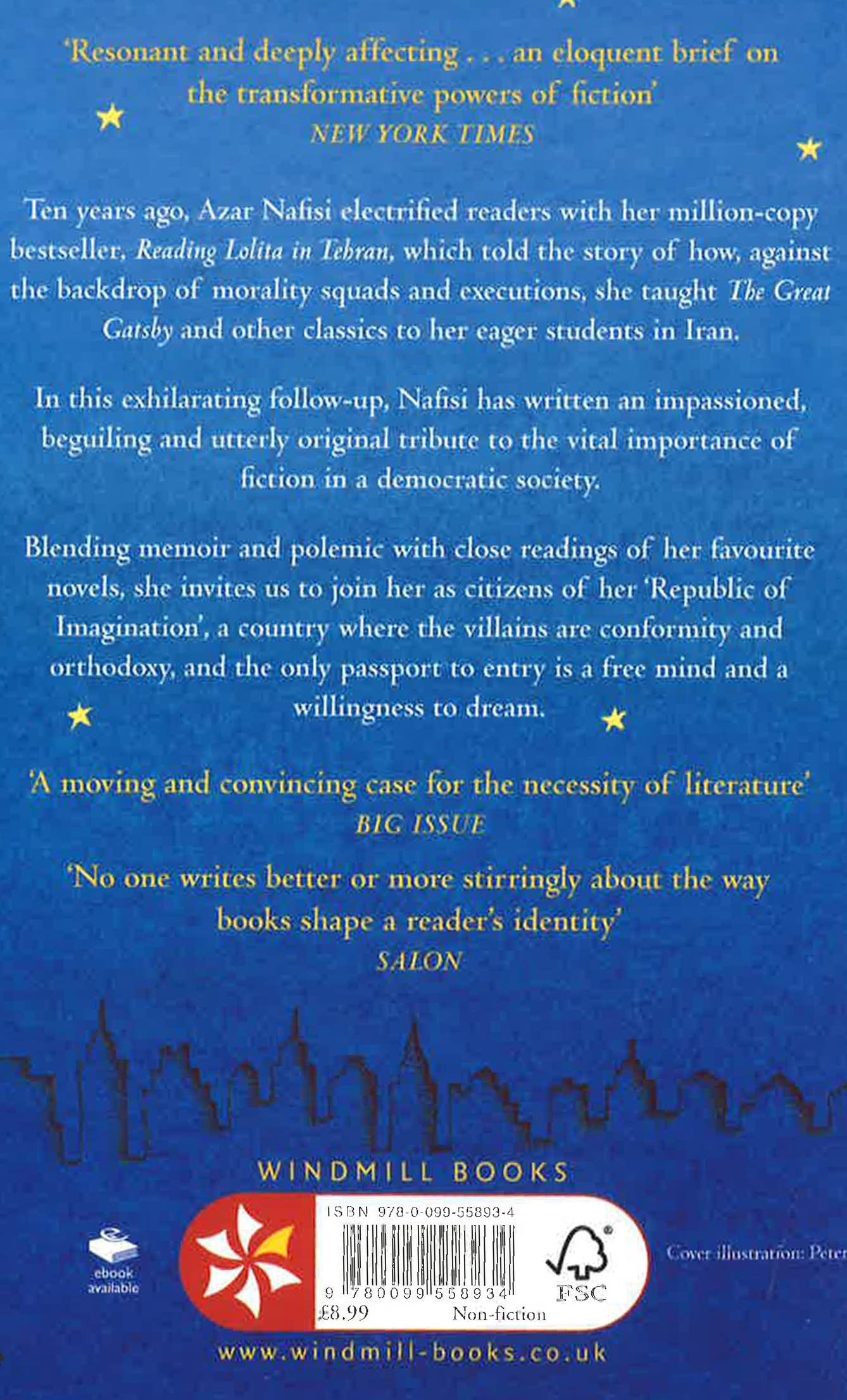 From the author of the bestselling memoir Reading Lolita in Tehran comes a powerful and passionate case for the vital role of fiction today. Ten years ago, Azar Nafisi electrified readers with her million-copy bestseller, Reading Lolita in Tehran, which told the story of how, against the backdrop of morality squads and executions, she taught The Great Gatsby and other classics to her eager students in Iran. In this exhilarating follow-up, Nafisi has written the book her fans have been waiting for: an impassioned, beguiling and utterly original tribute to the vital importance of fiction in a democratic society. Taking her cue from a challenge thrown to her at a reading, she energetically responds to those who say fiction has nothing to teach us today. Blending memoir and polemic with close readings of her favourite novels, she invites us to join her as citizens of her 'Republic of Imagination', a country where the villains are conformity, and orthodoxy and the only passport to entry is a free mind and a willingness to dream.