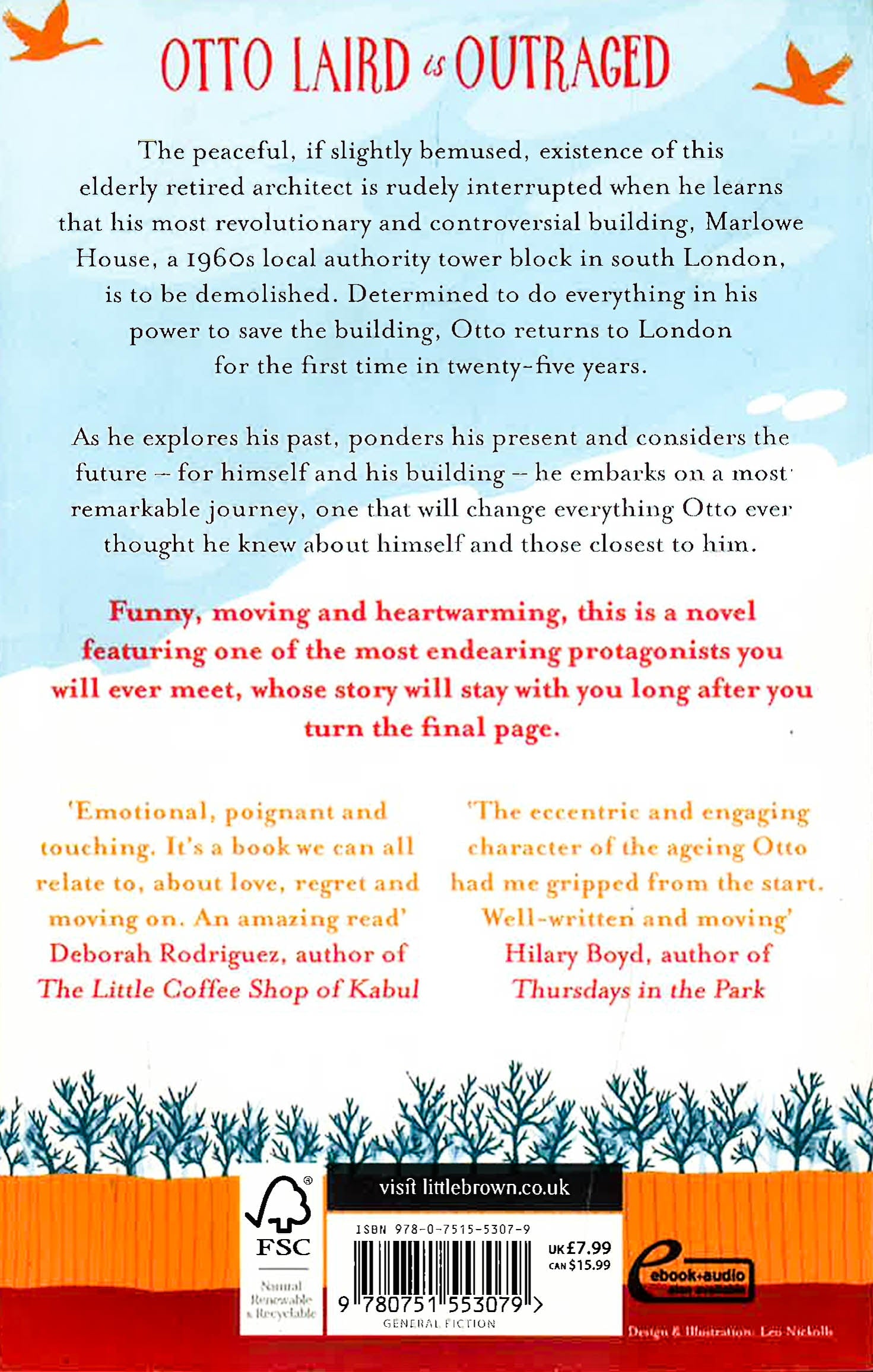 Otto Laird is outraged ...The peaceful, if slightly bemused, existence of this elderly, retired architect is rudely interrupted when he learns that his most significant and revolutionary building, Marlowe House, a 1960s tower block council estate in south London is to be demolished. Determined to do everything in his power to save the building, Otto returns to London for the first time in twenty-five years. As he explores his past, ponders his present and considers the future -- for himself and his building -- Otto embarks on a most remarkable journey, one that will change everything he ever thought he knew about himself and those closest to him. Funny, moving and heart-warming, this is a novel featuring one of the most endearing protagonists you will ever meet, whose story will stay with you long after you turn the final page.