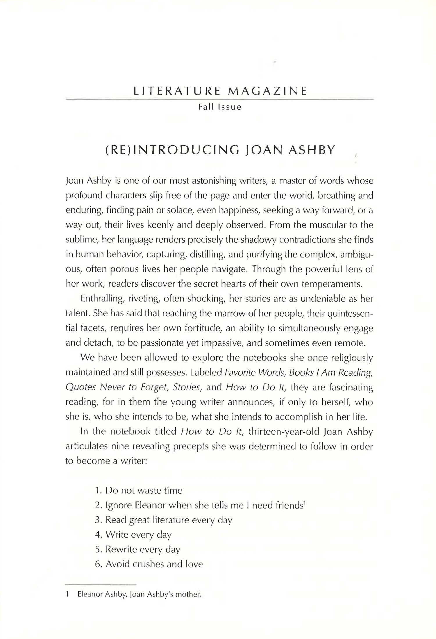 I viewed the consumptive nature of love as a threat to serious women. But the wonderful man I just married believes as I do?work is paramount, absolutely no children?and now love seems to me quite marvelous. These words are spoken to a rapturous audience by Joan Ashby, a brilliant and intense literary sensation acclaimed for her explosively dark and singular stories. When Joan finds herself unexpectedly pregnant, she is stunned by Martin?s delight, his instant betrayal of their pact. She makes a fateful, selfless decision then, to embrace her unintentional family. Challenged by raising two precocious sons, it is decades before she finally completes her masterpiece novel. Poised to reclaim the spotlight, to resume the intended life she gave up for love, a betrayal of Shakespearean proportion forces her to question every choice she has made. Epic, propulsive, incredibly ambitious, and dazzlingly written, The Resurrection of Joan Ashby is a story about sacrifice and motherhood, the burdens of expectation and genius. Cherise Wolas?s gorgeous debut introduces an indelible heroine candid about her struggles and unapologetic in her ambition.*This book may have remainder mark*