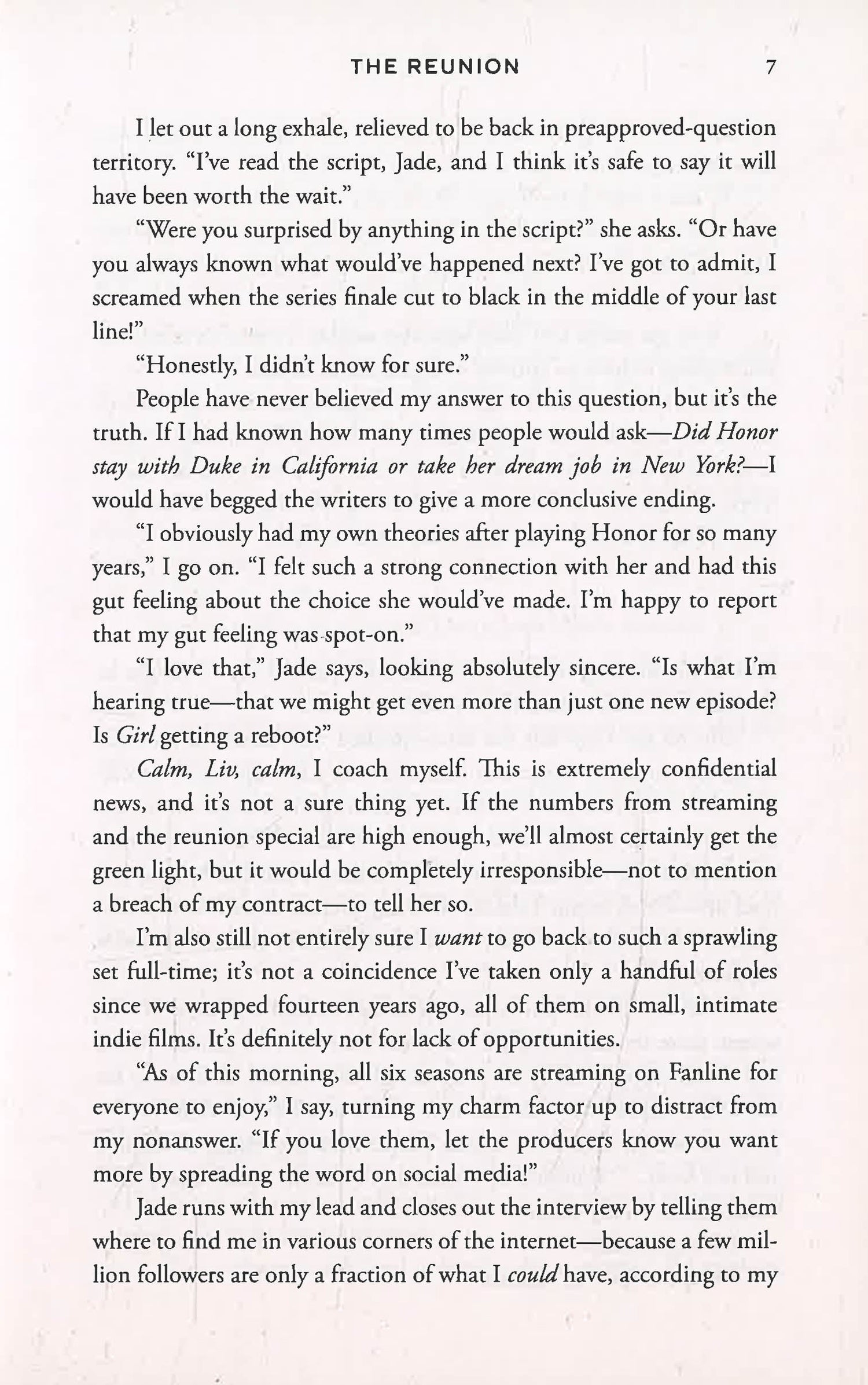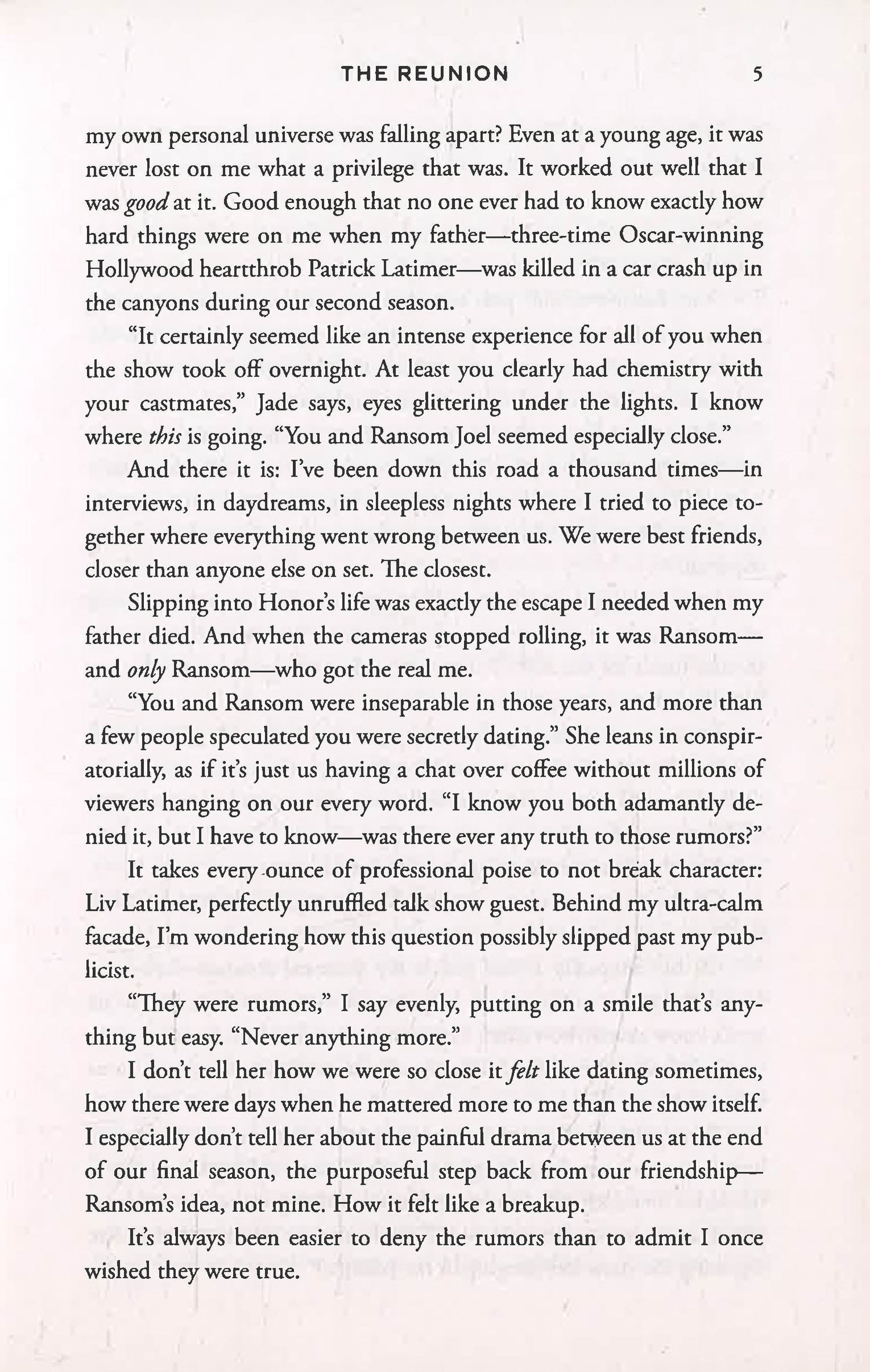 As the star of the popular teen drama Girl on the Verge, Liv spent her adolescence on the screen trying to be as picture perfect as her character in real life. But after the death of her father and the betrayal of her on-screen love interest and off-screen best friend Ransom Joel, Liv wanted nothing more than to retreat, living a mostly normal life aside from a few indie film roles. But now, twenty years after the show’s premiere, the cast is invited back for a reunion special, financed by a major streaming service.