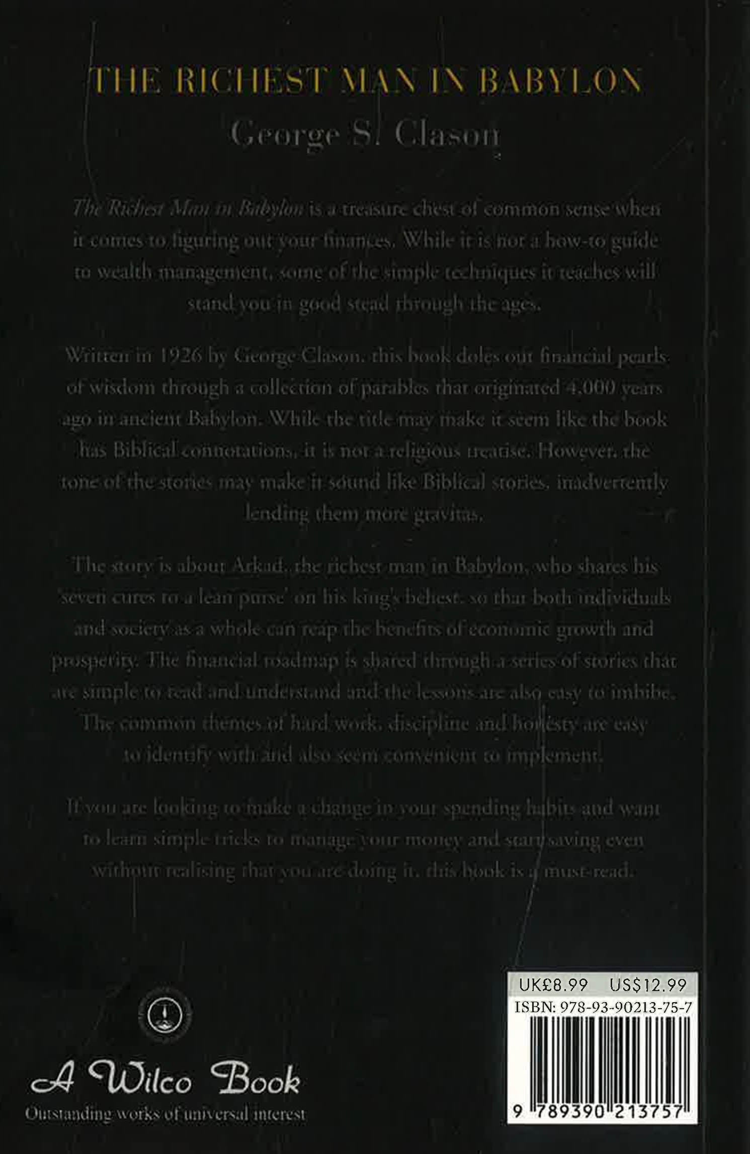 The story is about Arkad, the richest man in Babylon, who shares his seven cures to a lean purse on his kings behest, so that both individuals and society as a whole can reap the benefits of economic growth and prosperity. The financial roadmap is shared through a series of stories that are simple to read and understand and the lessons are abo casy to imbibe The common themes of hard work, discipline and honesty are easy to identify with and also seem convenient to implement.