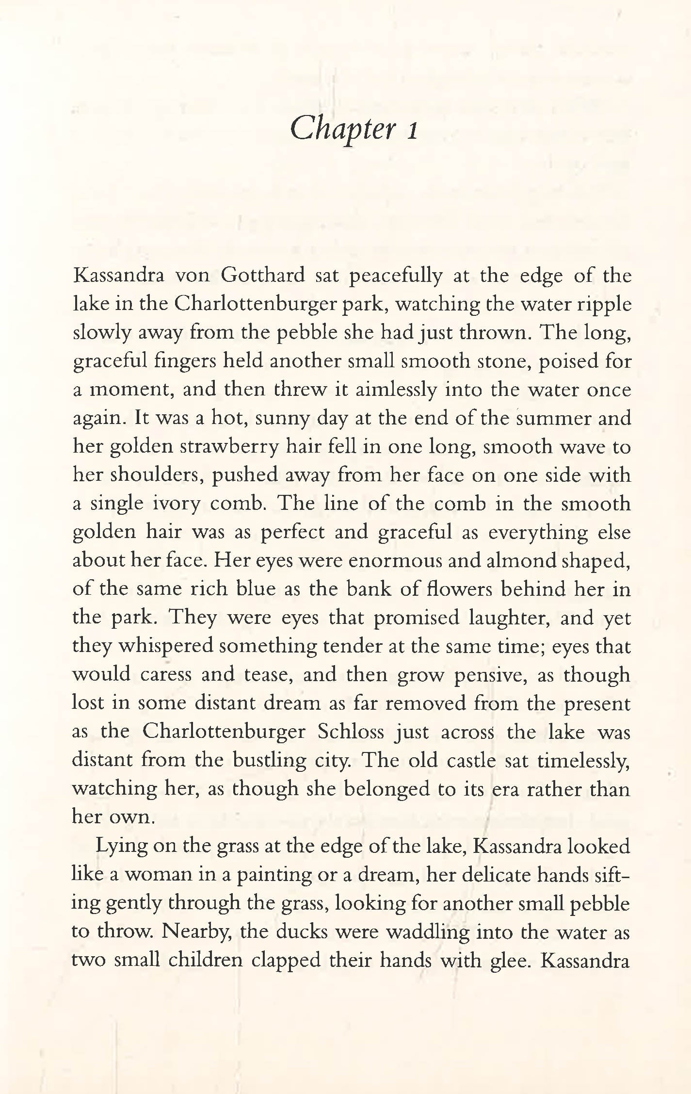 In the turbulent days of Germany in the thirties, Kassandra von Gotthard met the man who would change her life: Dolff Sterne. She was the beautiful wife of a wealthy Berlin banker. He was a famous Jewish writer. Together they shared a love that happens only once in a lifetime. But theirs was a love fated to end in tragedy.