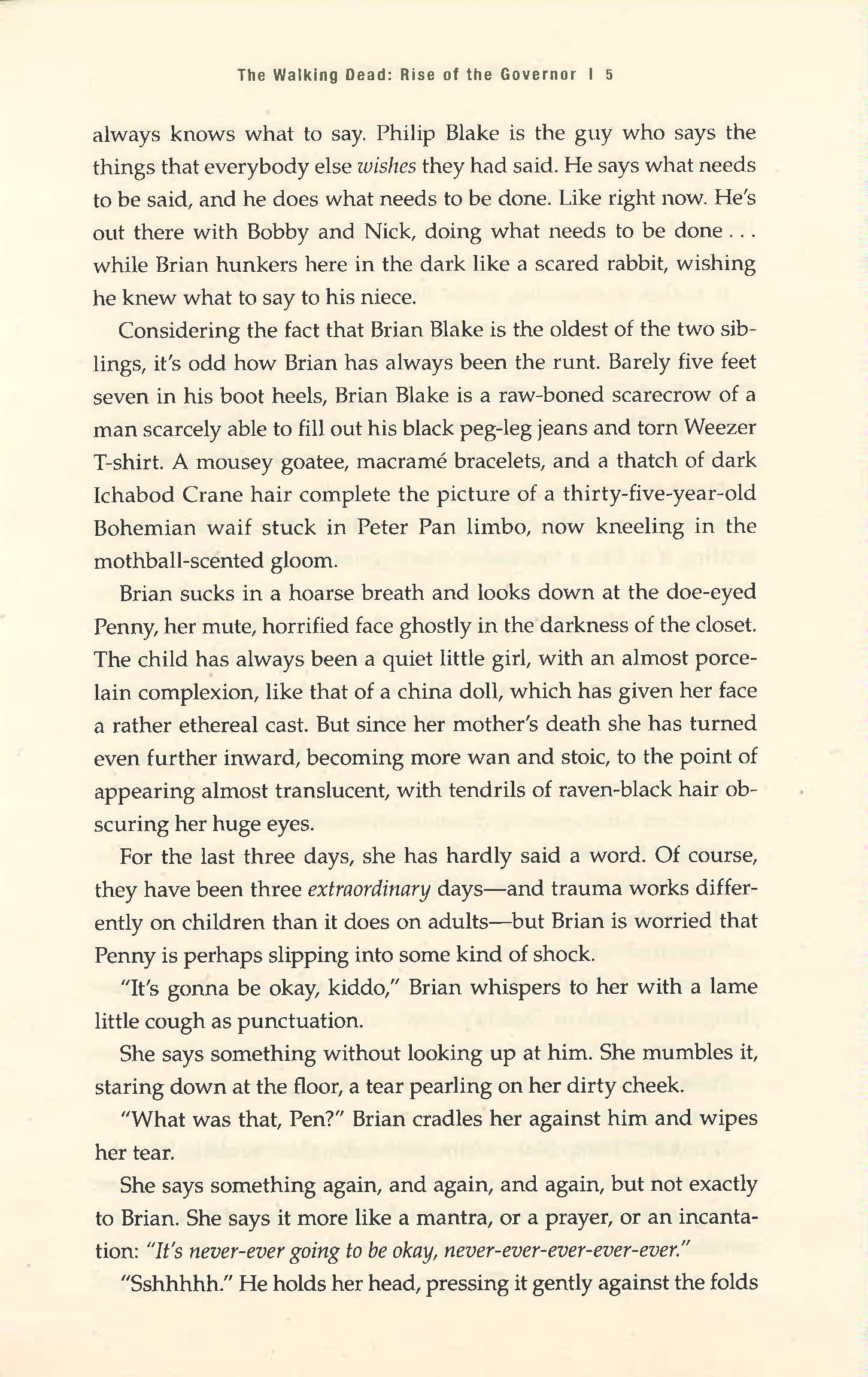 Based on the award-winning graphic novels created by Robert Kirkman, if you liked The Walking Dead TV series, you'll love this.The world has gone to hell - and that story starts here. Philip Blake's life has been turned upside down. In less than seventy-two hours, an inexplicable event has resulted in people everywhere . . . turning. Now the walking dead roam the streets, massacring the living, and it seems that nowhere is safe. Escaping his small town, Philip has just one focus in life - to protect his young daughter Penny. And he'll do whatever it takes to ensure she survives. With his two old high-school friends and his brother Brian, Philip decides to aim for Atlanta. It's said refugee centres are being set up there. But between them and safety stand the walking dead - and they must, somehow, pass through them to reach salvation. The Rise of the Governor is fast-paced, action-packed storytelling about the lengths some people will go to survive. This book features new characters, new storylines and the same electrifying world from the hit TV show The Walking Dead.