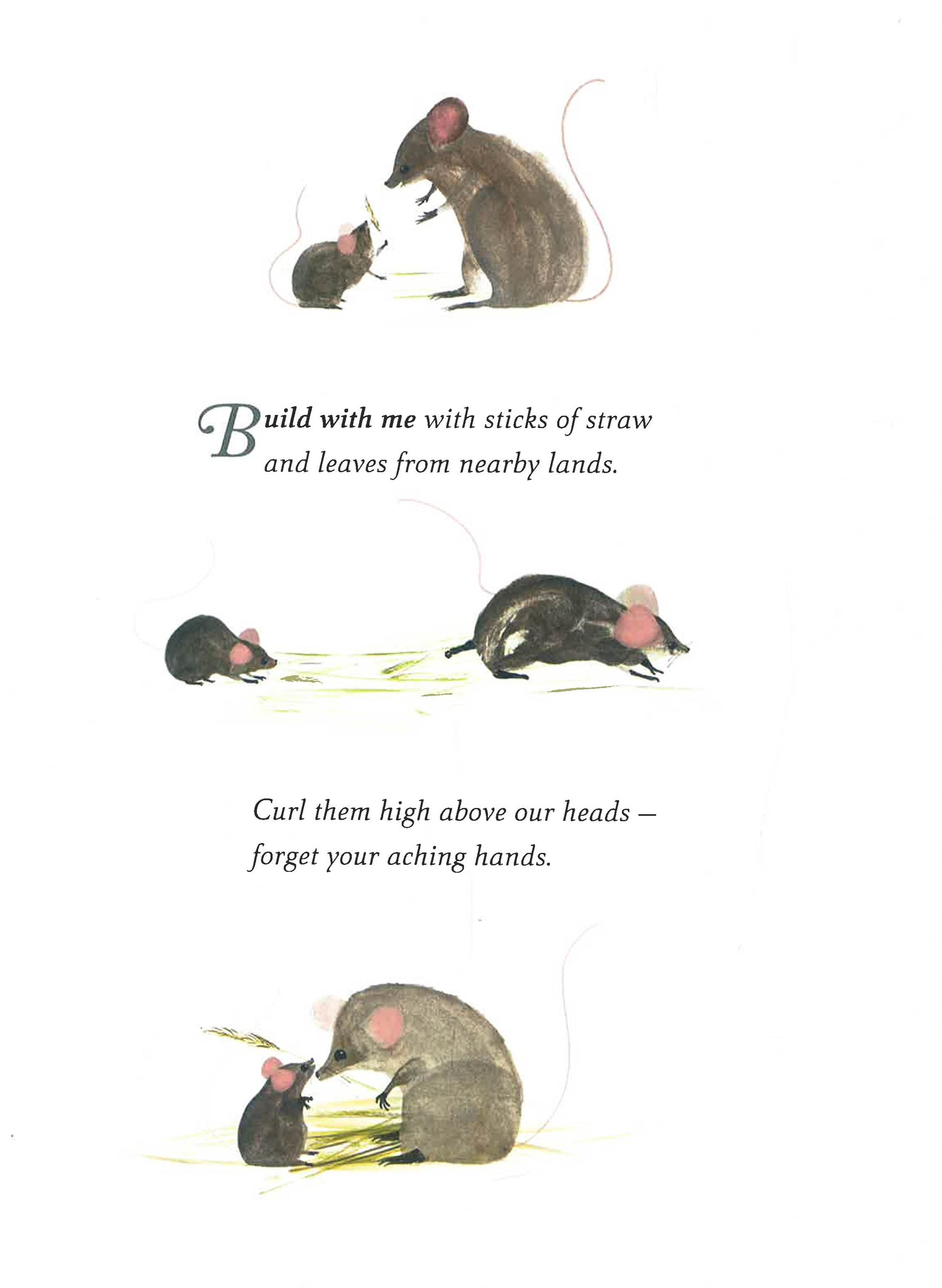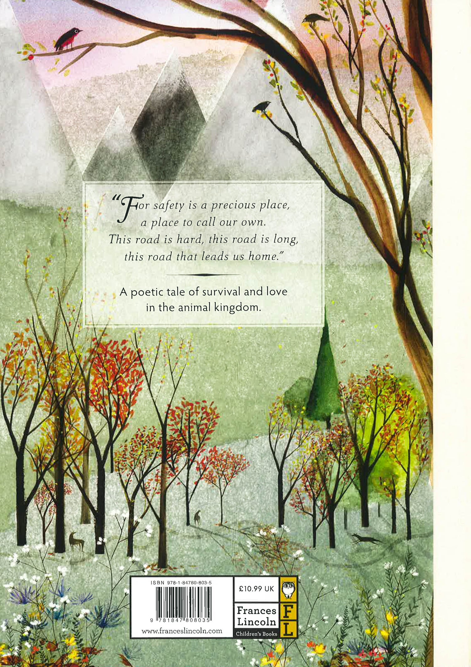 As winter approaches, a bird flees with her chick, a mouse builds a nest for her child and rabbits run from wolves that roam in the darkening woods. The road home is long and hard, but the animals have each other in this poetic meditation on nature, survival and love.