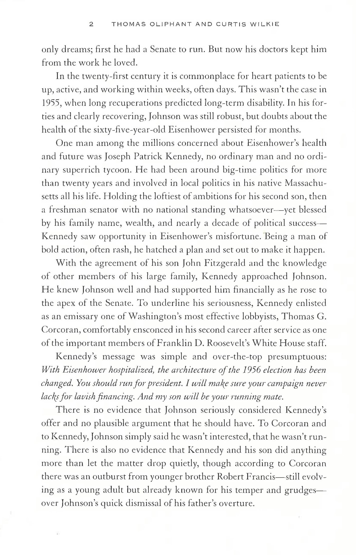 A must-read for fans of presidential history." --USA TODAY "Splendid...a gripping, authoritative campaign history." --The Boston Globe "Terrific...a tougher and more balanced account of the long campaign than anybody's written yet." --The Christian Science Monitor A behind-the-scenes, revelatory account of John F. Kennedy's wily campaign to the White House, beginning with his bold, failed attempt to win the vice presidential nomination in 1956. A young and undistinguished junior plots his way to the presidency and changes the way we nominate and elect presidents. John F. Kennedy and his young warriors invented modern presidential politics. They turned over accepted wisdom that his Catholicism was a barrier to winning an election and plotted a successful course to that constituency. They hired Louis Harris--a polling entrepreneur--to become the first presidential pollster. They twisted arms and they charmed. They lined up party bosses, young enthusiasts, and fellow Catholics and turned the traditional party inside out. The last-minute invitation to Lyndon B. Johnson for vice president in 1956 surprised them only because they had failed to notice that he wanted it. They invented The Missile Gap in the Cold War and out-glamoured Richard Nixon in the TV debates. Now acclaimed, award-winning journalists Tom Oliphant and Curtis Wilkie provide the most comprehensive account, based on a depth of personal reporting, interviews, and archives. The authors have examined more than 1,600 oral histories at the John F. Kennedy library; they've interviewed surviving sources, including JFK's sister Jean Smith, and they draw on their own interviews with insiders including Ted Sorensen and Arthur Schlesinger, Jr. From the start of the campaign in 1955 when his father tried to persuade President Johnson to run with JFK as his running mate, The Road to Camelot reveals him as a tough, shrewd political strategist who kept his eye on the prize. This is one of the great campaign stories of all time, appropriate for today's political climate. *This book may have remainder mark*