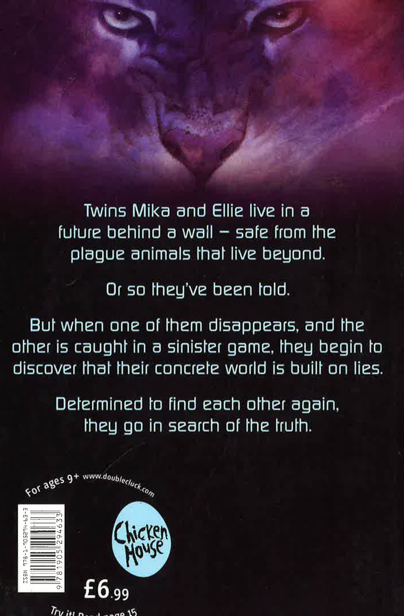 Twelve-year old twins, Mika and Ellie, live in a future behind a wall - safe from the plague animals beyond. Or so they've been told. But when one of them disappears, and the other takes part in a sinister virtual reality game, they begin to discover their concrete world is built on lies. Determined to find each other again, they go in search of the truth. And as a strange sound in their heads grows to a roar, they find out that children and the planet have never mattered more.