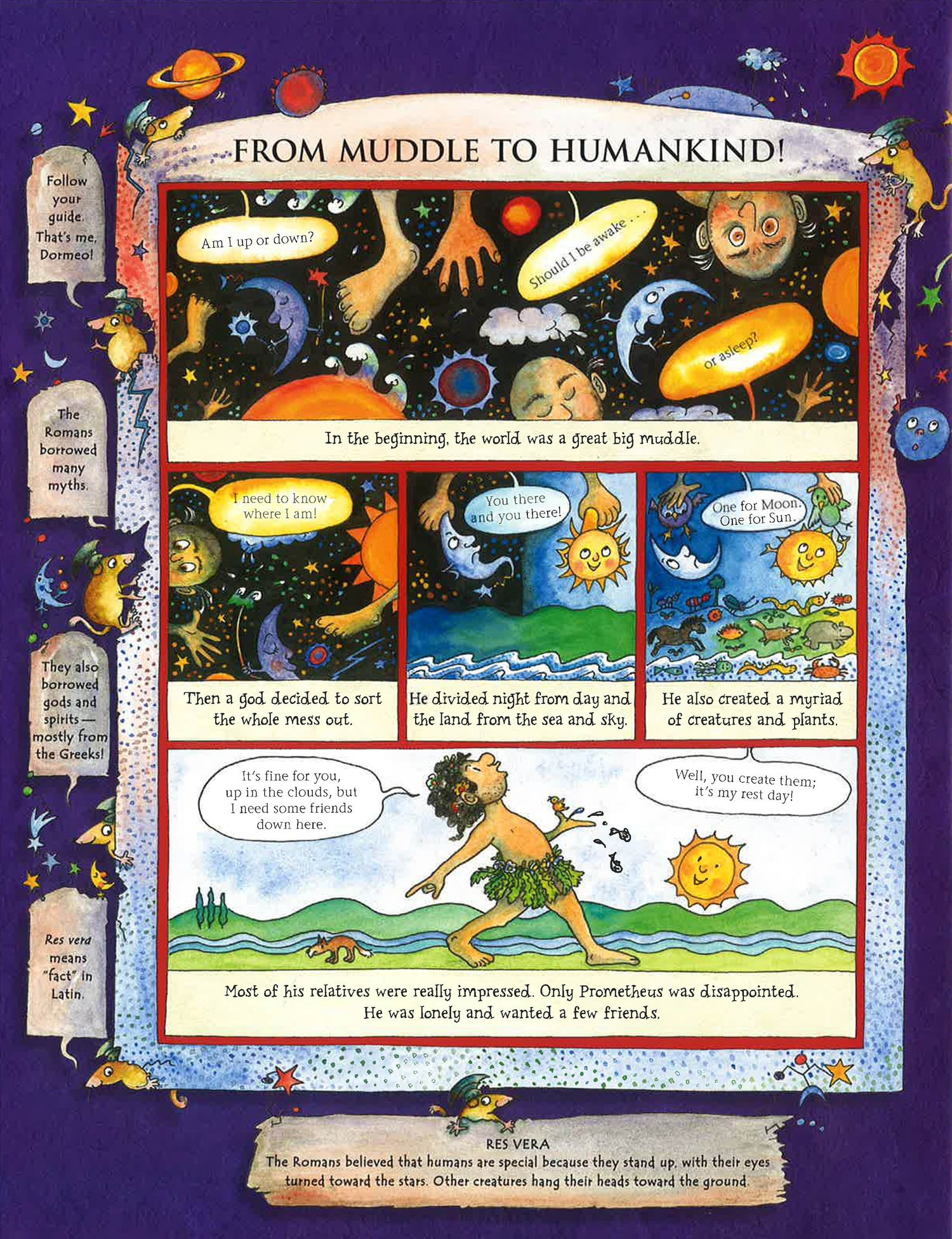 Meet Dormeo: gladiator, dormouse, berry-nibbler, and guide to ancient Rome. He's about to lead a tour -- from the temperamental gods and goddesses of Mount Olympus to the birth of the Roman Republic and the death of Julius Caesar. On the way are glimpses of life as a Roman citizen, from families to festivals, gladiators to guards, as well as a look at some of Rome's best-known emperors (good and not so good). Packed with fascinating information, this graphic storybook is a young reader's ideal introduction to the rise and fall of the Roman Empire.
