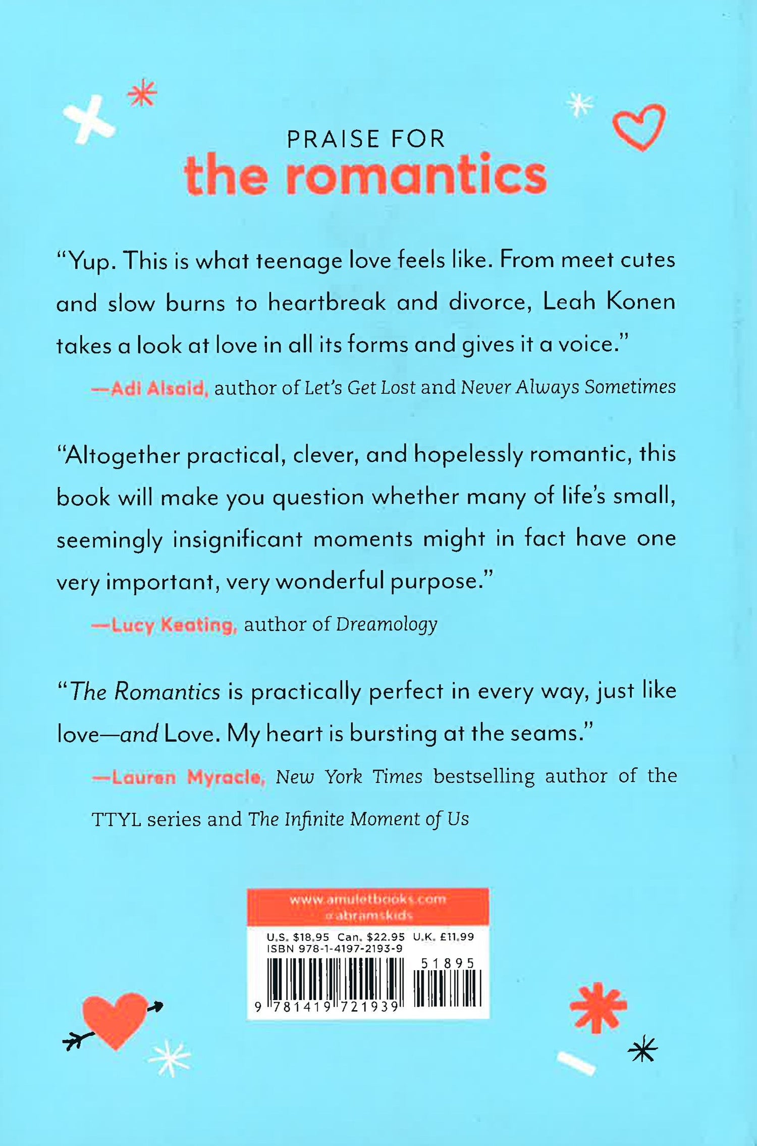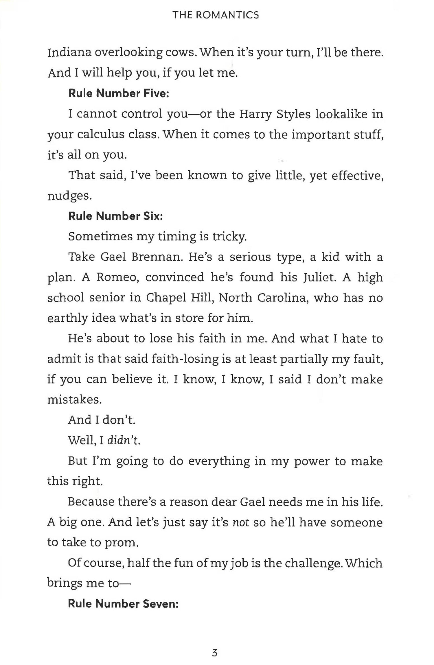 Perfect for fans of Lauren Myracle and Rainbow Rowell, The Romantics will charm readers of all ages. Gael Brennan is about to have his heart broken when his first big relationship crumbles on the heels of his parents' painful separation. Love intervenes with the intention of setting things right-but she doesn't anticipate the intrusion of her dreaded nemesis: the Rebound. Love's plans for Gael are sidetracked by Cara, Gael's hot-sauce-wielding "dream girl." The more Love meddles, the further Gael drifts from the one girl who can help him mend his heart. Soon Love starts breaking all her own rules-and in order to set Gael's fate back on course, she has to make some tough decisions about what it means to truly care.