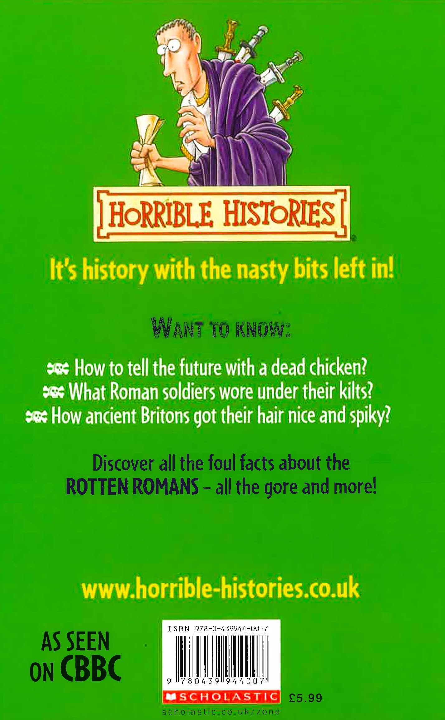 Go back into the really rotten times of the Romans, where there were beastly battles, deadly doctors and marvellous myths. Discover what Roman soldiers wore under their kilts, how ancient Britons got their hair nice and spikey and why rich Romans needed a vomitorium. History with the nasty bits left in! 2013 is HORRIBLE HISTORIES twentieth anniversary.