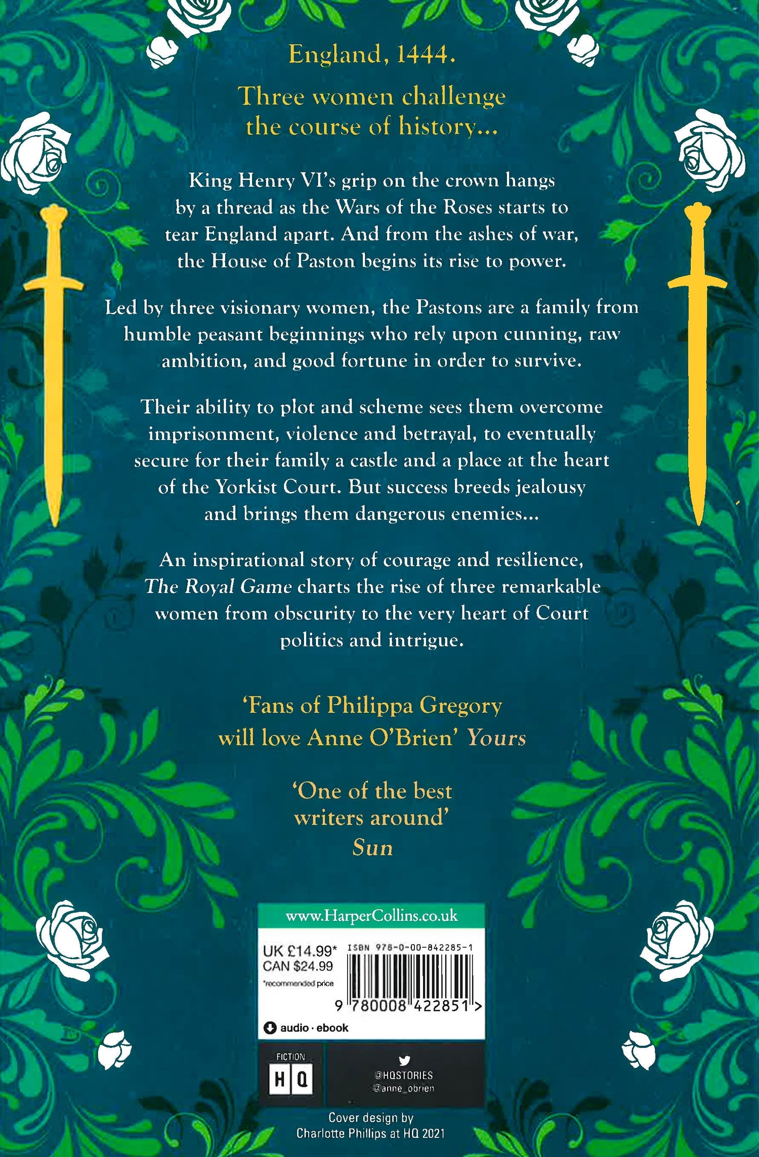 I was completely captivated' Barbara Erskine The spellbinding new historical novel from the Sunday Times bestseller Anne O'Brien. England, 1444. Three women challenge the course of history... King Henry VI's grip on the crown hangs by a thread as the Wars of the Roses starts to tear England apart. And from the ashes of war, the House of Paston begins its rise to power. Led by three visionary women, the Pastons are a family from humble peasant beginnings who rely upon cunning, raw ambition, and good fortune in order to survive. Their ability to plot and scheme sees them overcome imprisonment, violence and betrayal, to eventually secure for their family a castle and a place at the heart of the Yorkist Court. But success breeds jealousy and brings them dangerous enemies... An inspirational story of courage and resilience, The Royal Game, charts the rise of three remarkable women from obscurity to the very heart of Court politics and intrigue. 'A wonderfully immersive and intriguing read, meticulously researched. I was completely captivated' Barbara Erskine