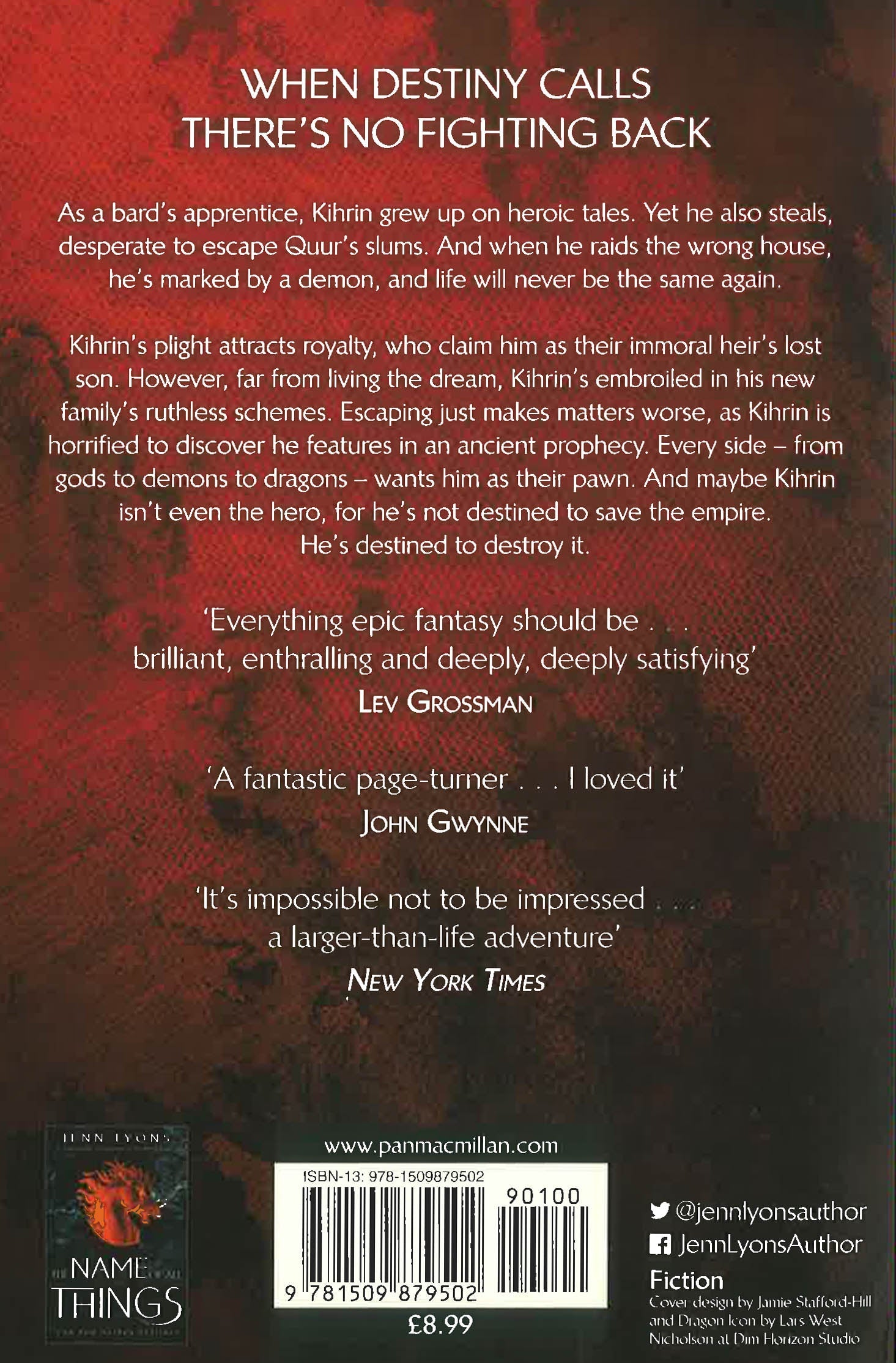 In this thunderously good read, prophecy and magic combine in an incredible epic fantasy of imperial politics, gods and demons. The Ruin of Kings is the first book in Jenn Lyons's extraordinary series, A Chorus of Dragons. When destiny calls, there's no fighting back . . . As a bard's apprentice, Kihrin grew up with tales of legendary deeds. He also steals, desperate to buy a way out of Quur's slums. But when he raids the wrong house, he's marked by a demon and life will never be the same again.Kihrin's plight brings him to the attention of royalty, who claim him as the lost son of their immoral prince. But far from living the dream, Kihrin's at the mercy of his new family's ruthless ambitions. However, escaping his jewelled cage just makes matters worse. Kihrin is horrified to learn he's at the centre of an ancient prophecy. And every side - from gods and demons to dragons and mages - want him as their pawn. Those old stories lied about many things too, especially the myth that the hero always wins. Then again, maybe Kihrin isn't the hero, for he's not destined to save the empire. He's destined to destroy it.Continue the epic fantasy adventure with The Name of All Things and The Memory of Souls.'What an extraordinary book . . . enthralling and deeply, deeply satisfying. I loved it' - Lev Grossman, author of The Magicians'A fantastic page-turner with a heady blend of great characters' - John Gwynne, author of A Time of Dread'A virtually un-put-down-able read' - Kirkus Reviews