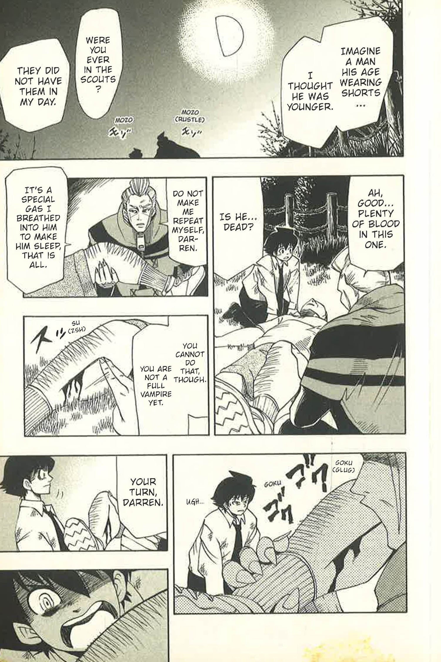 Darren joins the vampire, Mr Crepsley, as his assistant and they return to the Cirque du Freak. There, Darren makes friends with the snake-boy, Evra Von (who knows what Darren has become). He also meets a local boy, Sam, and RV, an eco-warrior and animal lover (who do not).