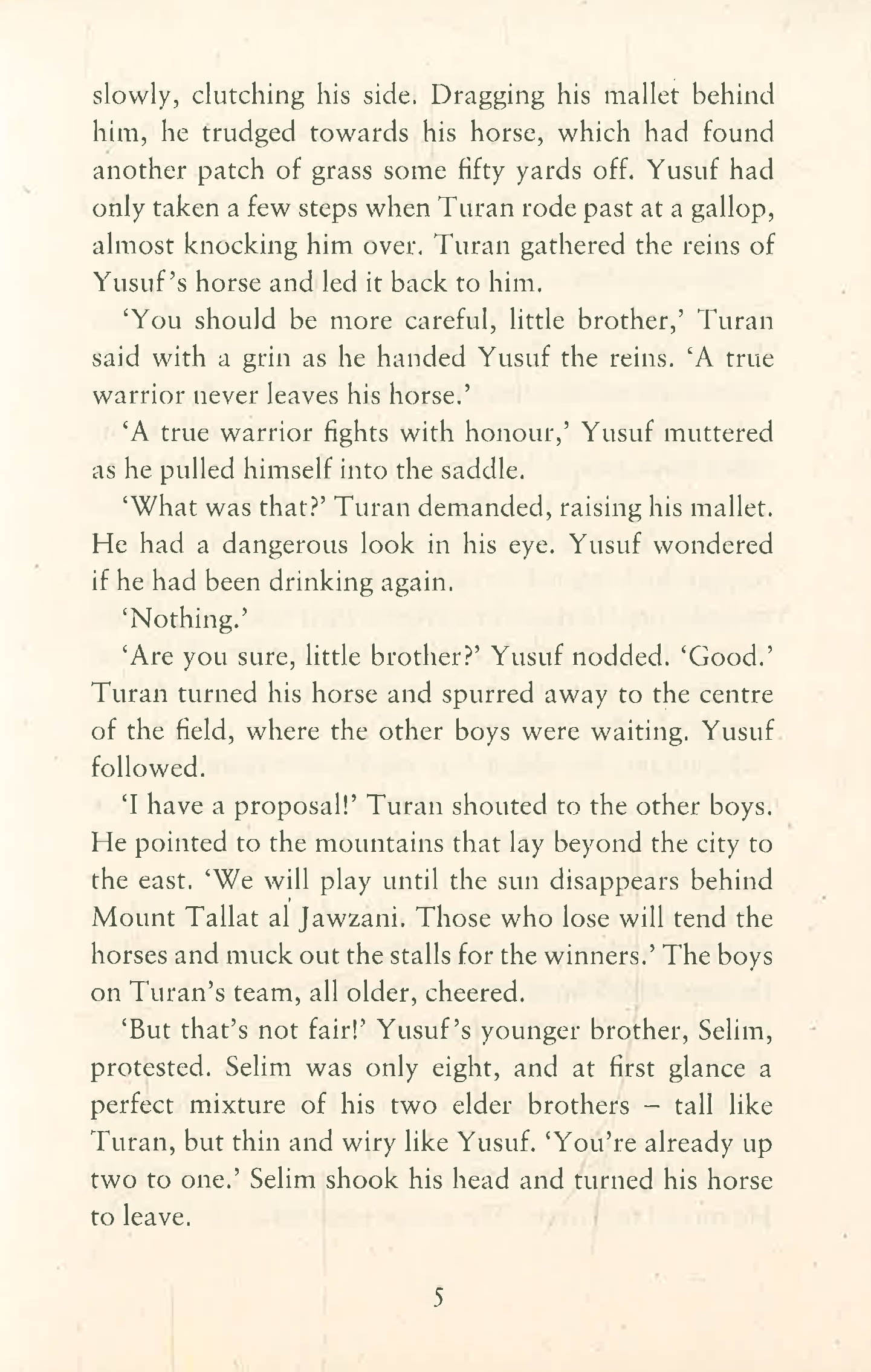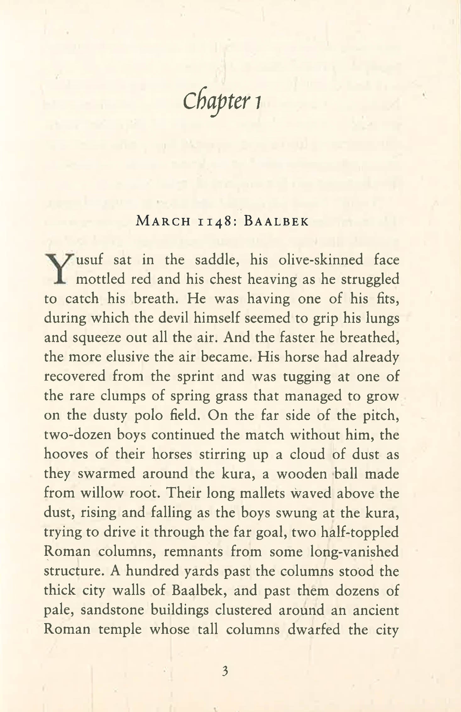 'Salah ad-Din, or Saladin as he is known to the Franks, was a Kurd, the son of despised people, and yet he became Sultan of Egypt and Syria. He united the peoples of Allah, recaptured Jerusalem, and drove the Crusaders to the very edge of the sea. He battled, and in the end tamed King Richard the Lionheart, who well deserved his savage name. He was a great man, the greatest man that I ever knew, but when I first met him, he was only a skinny child . . .'