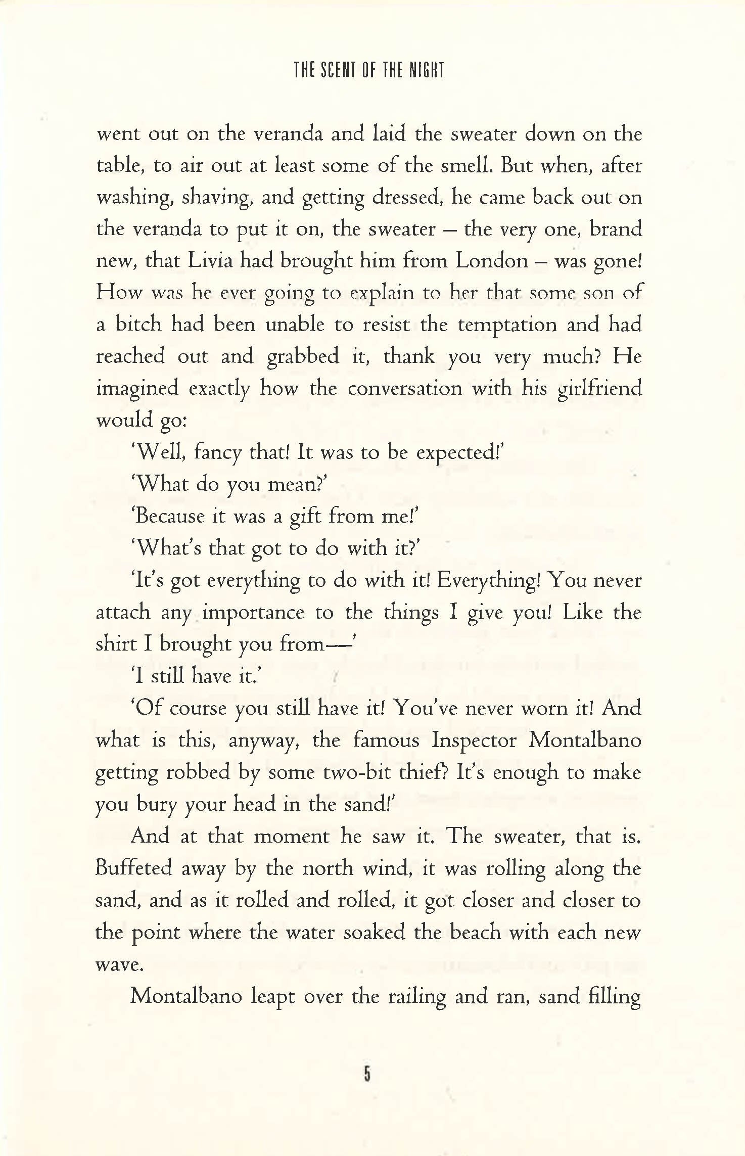 The Scent of the Night is the sixth comic detective novel in the Inspector Montalbano series by Andrea Camilleri.
