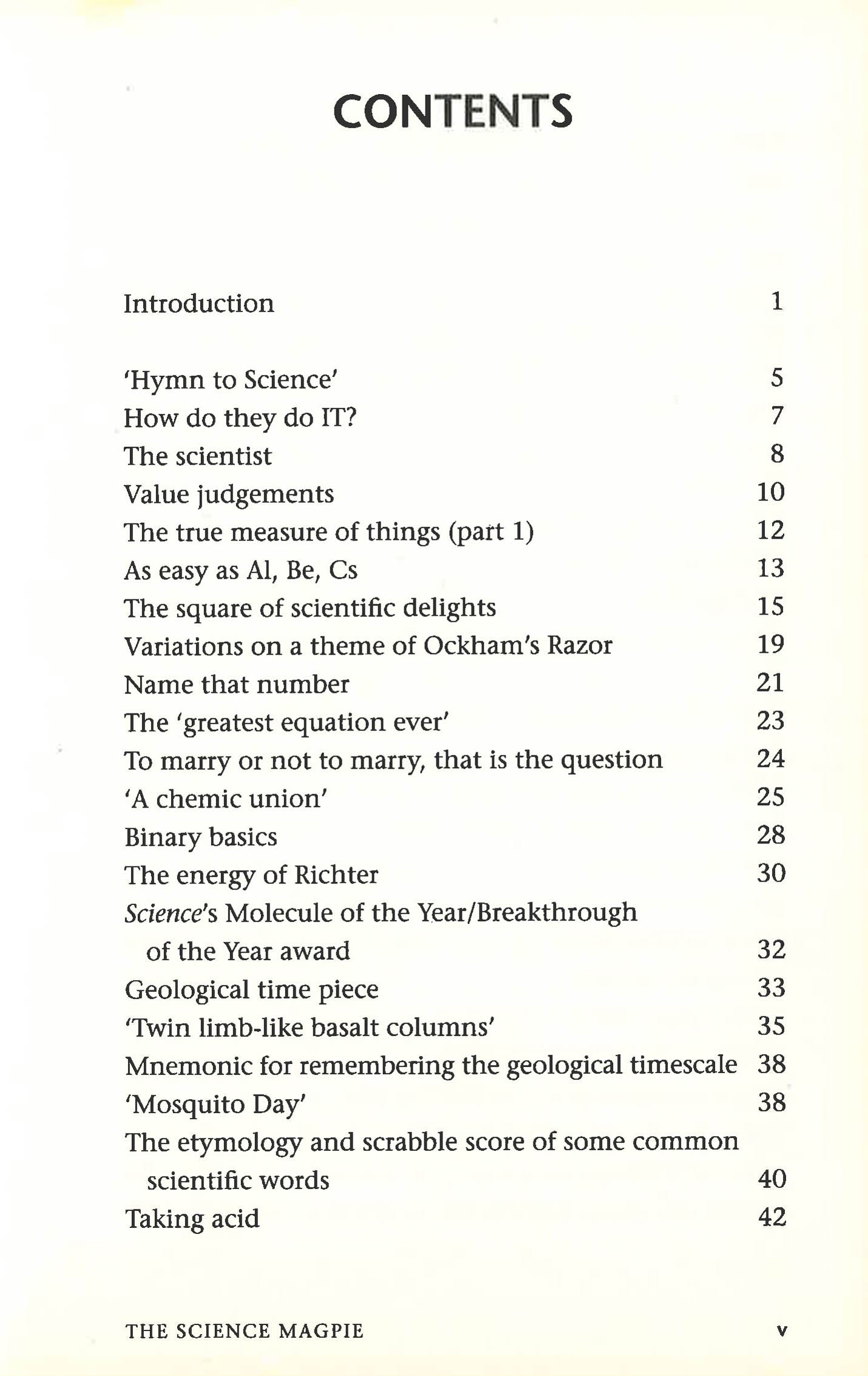 From the Large Hadron Collider rap to the sins of Isaac Newton, The Science Magpie is a compelling collection of scientific curiosities. Expand your knowledge as you view the history of the Earth on the face of a clock, tremble at the power of the Richter scale and learn how to measure the speed of light in your kitchen. Skip through time with Darwin's note on the pros and cons of marriage, take part in an 1858 Cambridge exam, meet the African schoolboy with a scientific puzzle named after him and much more.