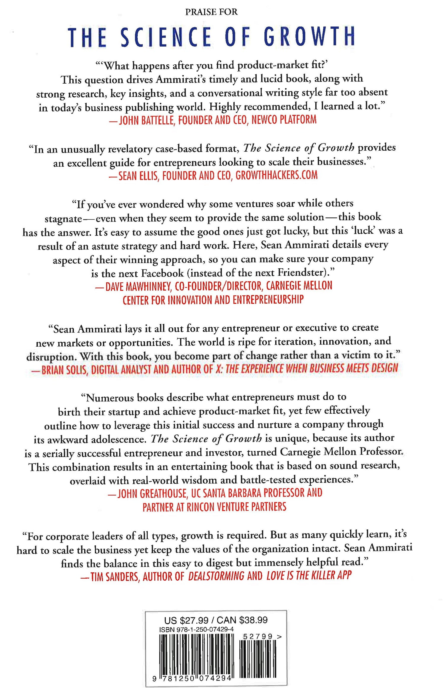 The lean entrepreneurship movement has captivated Silicon Valley and entrepreneurs across the country. It's provided an agile framework to develop the right product solution for a given target market, and is now used by almost every fledgling company to do just that. The next challenge is growth - to achieve the financial returns and, more importantly, the impact they dreamed of when starting off on their adventure. Why do some companies realize the VC's goal of a 10x return on investment, while others flounder? What differentiates the companies that become part of the fabric of our lives and remain responsive, no matter how big they get from those that quickly fade? To find out, Ammirati looks at 20 different companies in pairs, who have achieved product-market fit at about the same point in history with the same general target customer-one of which has gone on to achieve real scale, while the other languished. As his research reveals, just a handful of choices-among them, who to partner with, how to finance growth, and how to use data-make all the difference in the world. With such intriguing examples as Linked ln vs. Spoke, Facebook vs. Friendster, and McDonald's vs. White Castle, Ammirati shows the secret of "the science of growth" and how to cultivate it in any organization. *This book may have remainder marks.