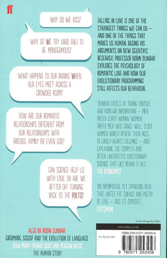 Falling in love is one of the strangest things we can do - and one of the things that makes us uniquely human. But what happens to our brains when our eyes meet across a crowded room? Why do we kiss each other, forget our friends, seek a 'good sense of humour' in Lonely Hearts adverts and try (and fail) to be monogamous? How are our romantic relationships different from our relationships with friends, family or even God? Can science help us, or are we better off turning back to the poets? Basing his arguments on new and experimental scientific research, Robin Dunbar explores the psychology and ethology of romantic love and how our evolutionary programming still affects our behaviour. Fascinating and illuminating, witty and accessible, The Science of Love and Betrayal is essential reading for anyone who's ever wondered why we fall in love and what on earth is going on when we do.