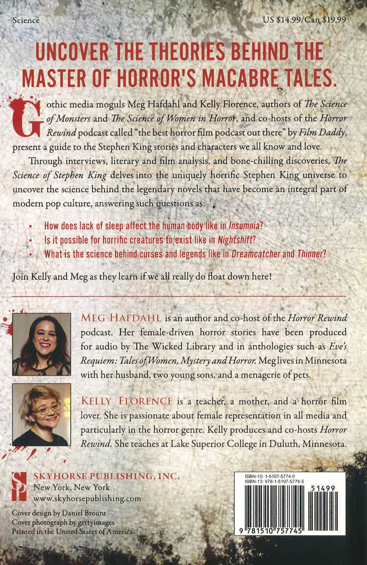 Gothic media moguls Meg Hafdahl and Kelly Florence, authors of The Science of Monsters and The Science of Women in Horror, and co-hosts of the Horror Rewind podcast called “the best horror film podcast out there” by Film Daddy, present a guide to the Stephen King stories and characters we all know and love. Through interviews, literary and film analysis, and bone-chilling discoveries, The Science of Stephen King delves into the uniquely horrific Stephen King universe to uncover the science behind the legendary novels that have become an integral part of modern pop culture, answering such questions as:
