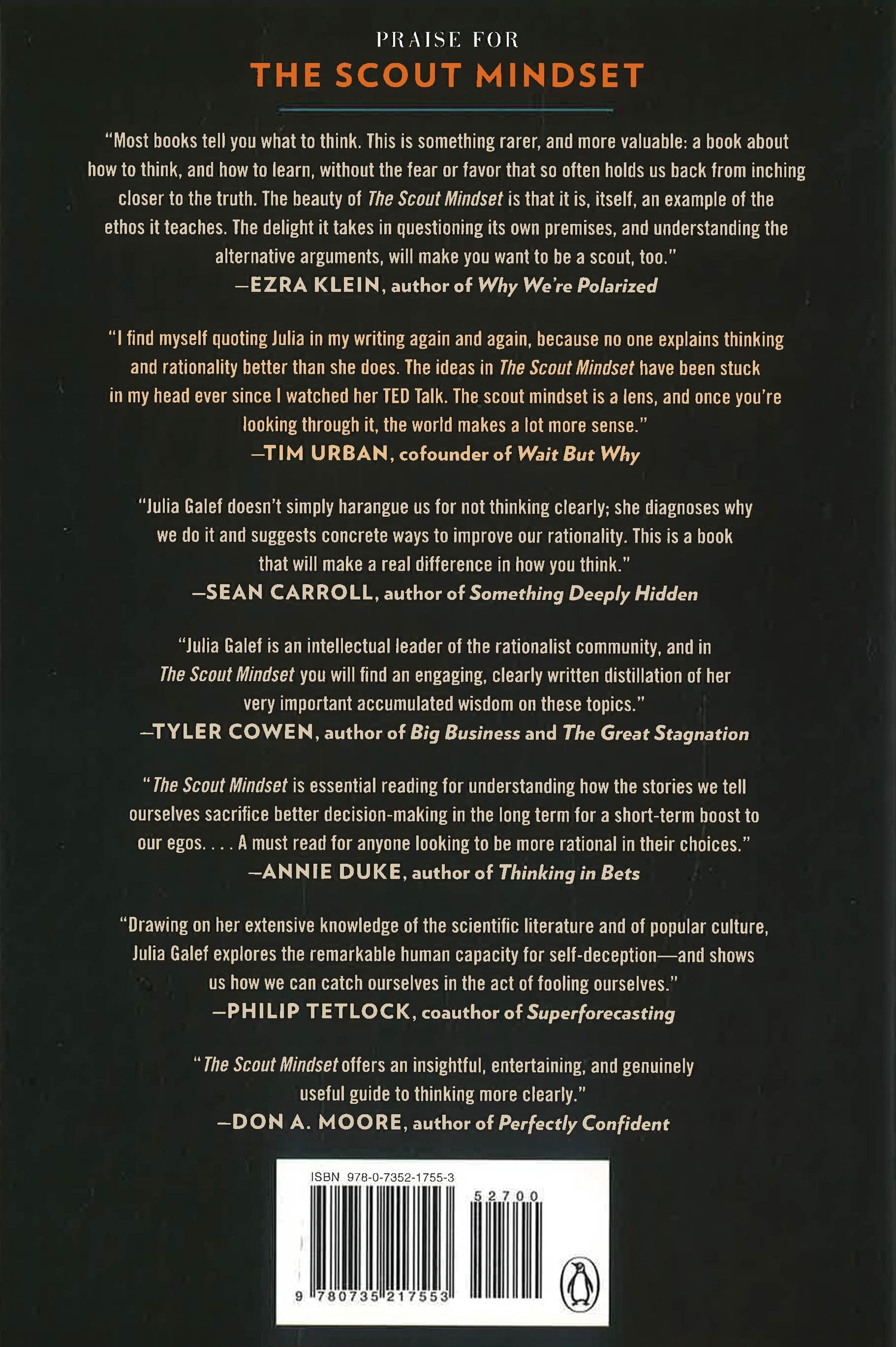 In The Scout Mindset, Galef shows that what makes scouts better at getting things right isn't that they're smarter or more knowledgeable than everyone else. It's a handful of emotional skills, habits, and ways of looking at the world—which anyone can learn. With fascinating examples ranging from how to survive being stranded in the middle of the ocean, to how Jeff Bezos avoids overconfidence, to how superforecasters outperform CIA operatives, to Reddit threads and modern partisan politics, Galef explores why our brains deceive us and what we can do to change the way we think.