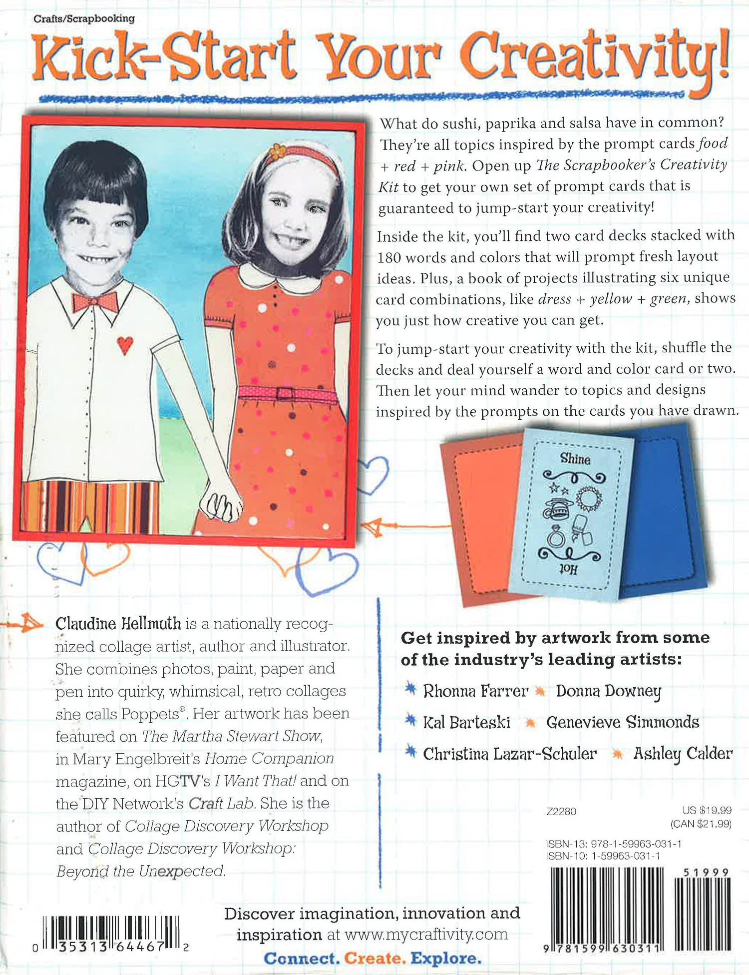 The Scrapbooker's Creativity Kit" provides a unique and exciting way for scrapbookers to get the inspiration they have been seeking. Inside the kit, readers will find inspiration cards sorted by colour and word. These cards are starting points for creating layouts that spur the reader to think beyond the obvious.Included are selections of artwork from Claudine and her group of contributing artists in which each piece was created using the same combination of colours and words. The multiple interpretations show readers how the cards can be mixed and matched to create numerous layouts.