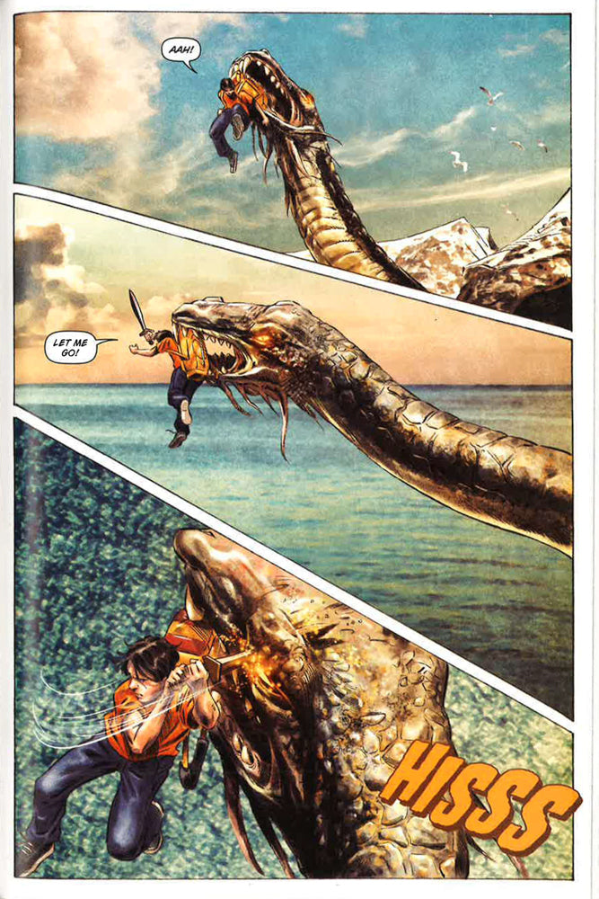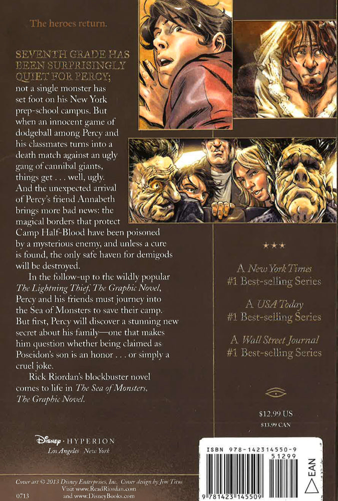 Seventh grade has been surprisingly quiet for Percy Jackson. Not a single monster has set foot on his New York prep-school campus. But when an innocent game of dodgeball among Percy and his classmates turns into a death match against an ugly gang of cannibal giants, things get...well, ugly. And the unexpected arrival of his friend Annabeth brings more bad news: the magical borders that protect Camp Half-Blood have been poisoned by a mysterious enemy, and unless a cure is found, the only safe haven for demigods will be destroyed. Featuring a faithful adaptation by Robert Venditti, stunning artwork by Attila Futaki, and sumptuous colors by newcomer Tamas Gaspar, Rick Riordan's blockbuster book comes to life in The Sea of Monsters, The Graphic Novel.