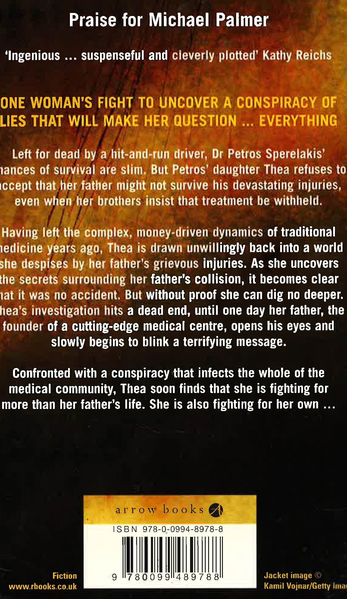 Left for dead by a hit-and-run driver, Dr Petros Sperelakis' chances of survival are slim. But Petros' daughter Thea refuses to accept that her father might not survive his devastating injuries, even when her brothers insist that treatment be withheld. Having left the complex, money-driven dynamics of traditional medicine years ago, Thea's father's grievous injuries draw her unwillingly back into a world she despises. As she uncovers the secrets surrounding her father's collision, it becomes clear that it was no accident. But without proof, she can dig no deeper. Thea's investigation hits a dead end until one day, her father, the founder of a cutting edge medical centre, opens his eyes and slowly begins to blink a terrifying message. Confronted with a conspiracy that infects the whole of the medical community, Thea soon finds that she is fighting for more than her father's life. She is also fighting for her own...