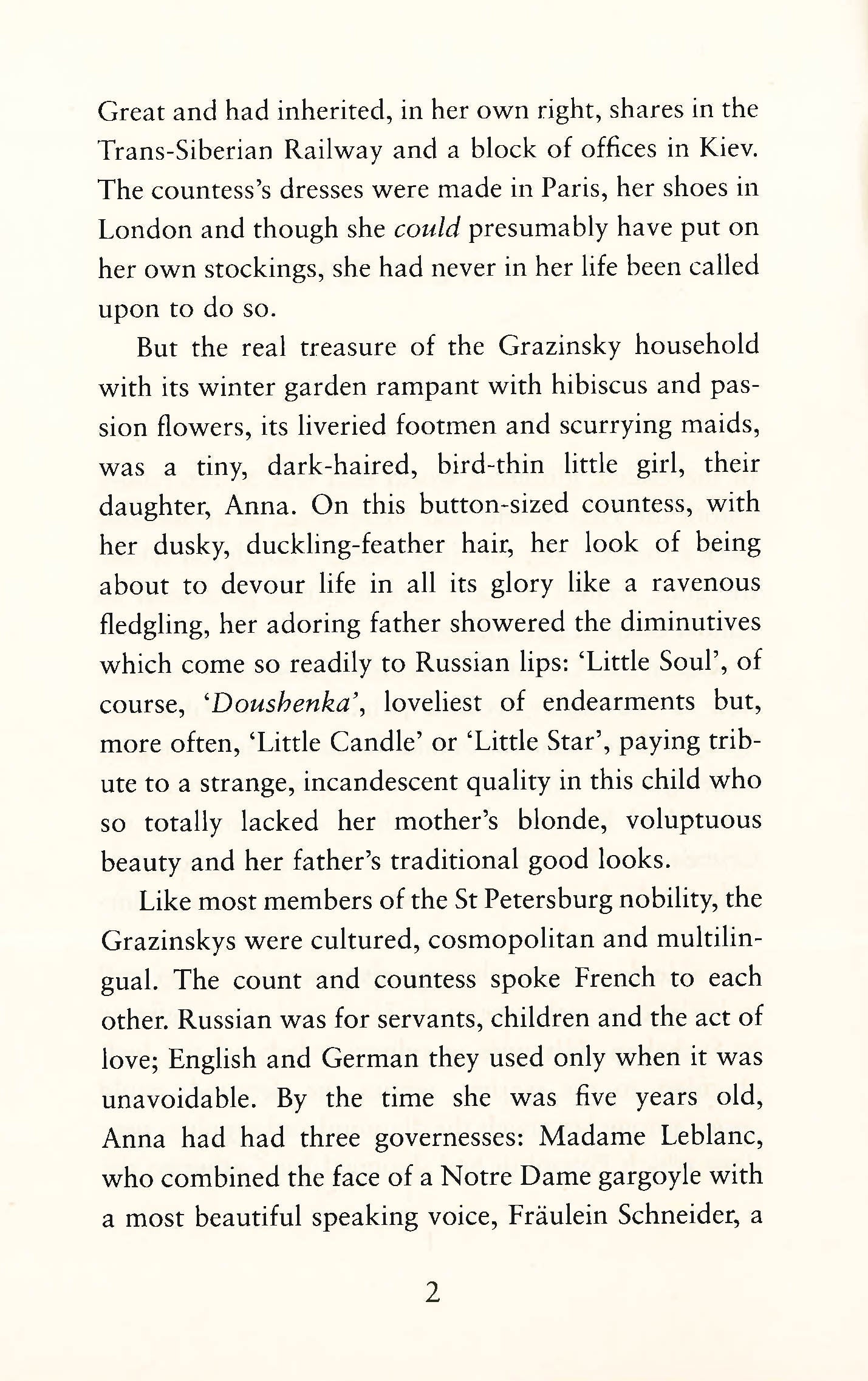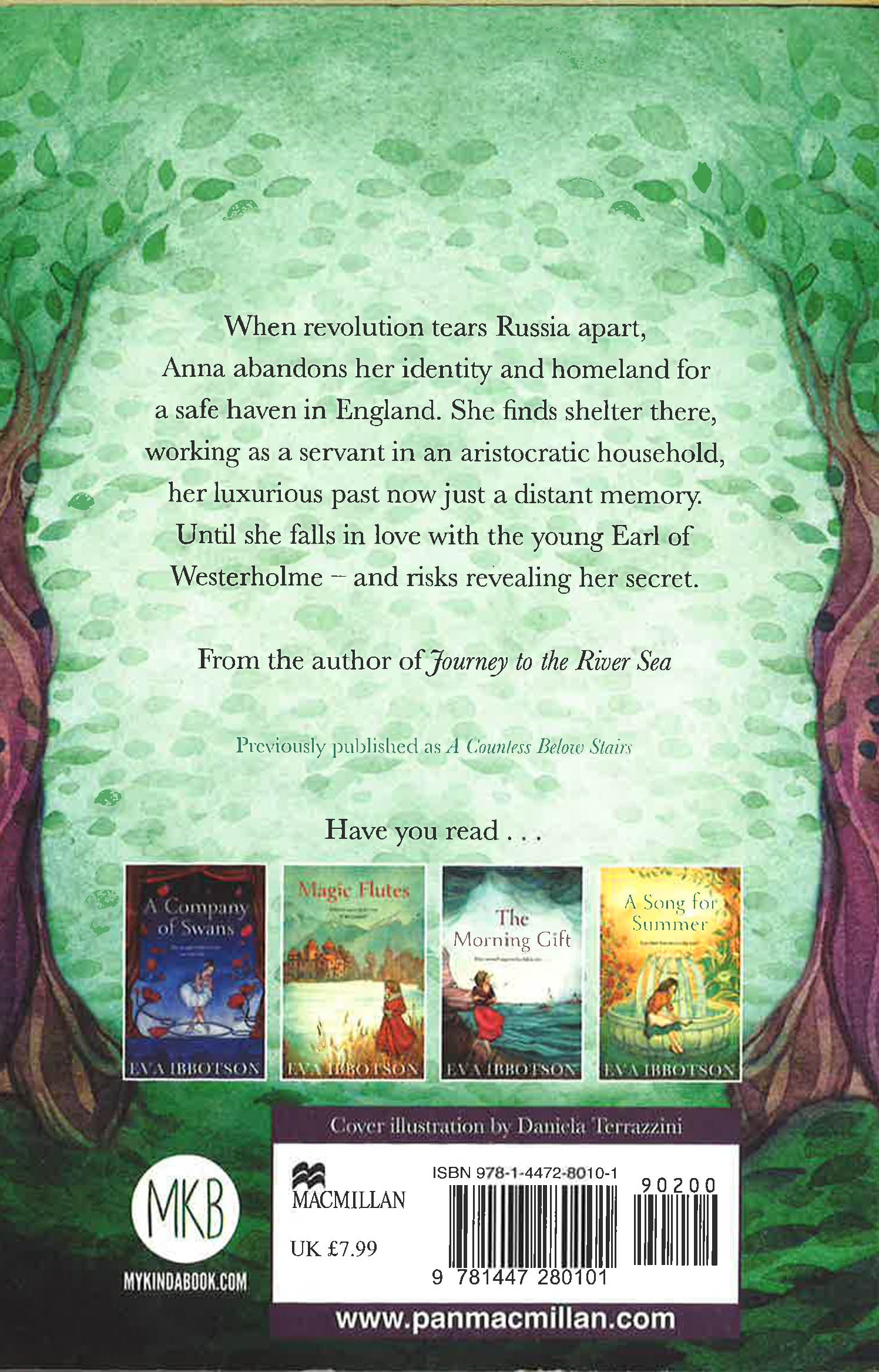 Eva Ibbotson's charming and warm-hearted tale, A Secret Countess was originally published as A Countess Below Stairs. Anna, a young countess, has lived in the glittering city of St Petersburg all her life in an ice-blue palace overlooking the River Neva. But when revolution tears Russia apart, her now-penniless family is forced to flee to England. Armed with an out-of-date book on housekeeping, Anna determines to become a housemaid and she finds work at the Earl of Westerholme's crumbling but magnificent mansion. The staff and the family are sure there is something not quite right about their new maid - but she soon wins them over with her warmth and dedication. Then the young Earl returns home from the war - and Anna falls hopelessly in love. But they can never be together: Rupert is engaged to the snobbish and awful Muriel - and anyway, Anna is only a servant. Or so everybody thinks . . .