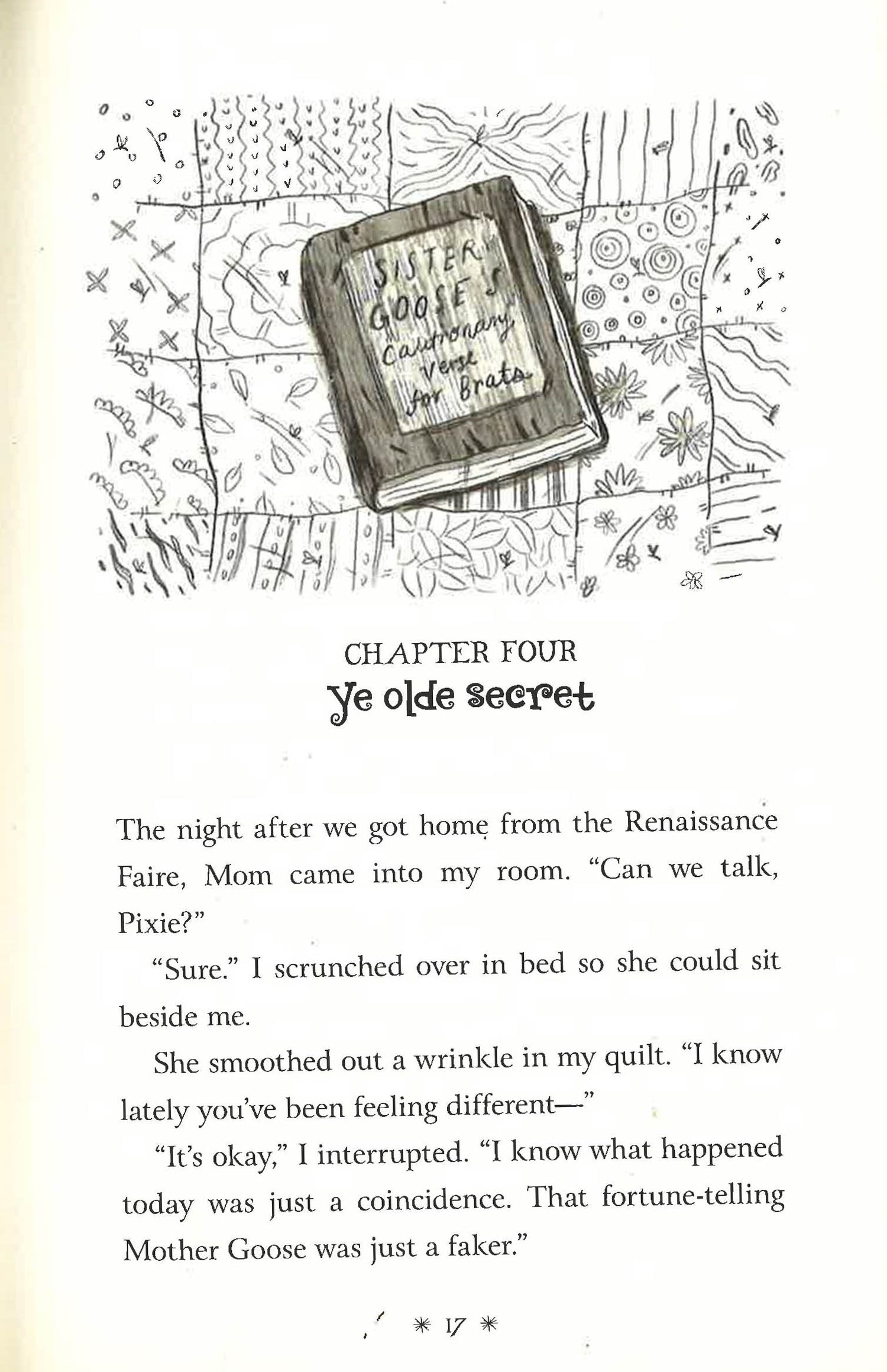 Fifth grader Pixie Piper has always known that she was a little different. She has a wild mop of hair that won’t stay put, her best friend is a boy, and to top it all off, she’s constantly coming up with rhymes and poems that just seem to pop out of her. Then, when Pixie thinks it can’t get any worse, she finds out that she actually is different—she’s a descendant of Mother Goose! This surprising and clever novel features family, friendship, poetry, a toilet museum, and just the right amount of magic, as well as a goose, a fox, and a beautiful golden retriever puppy. Rich, multigenerational characters and the real and powerful portrayal of grade-school friendships, with all their ups and downs, distinguish this terrific elementary school story that will appeal to fans of Judy Moody, Clementine, and novels by Wendy Mass and Lisa Graff.