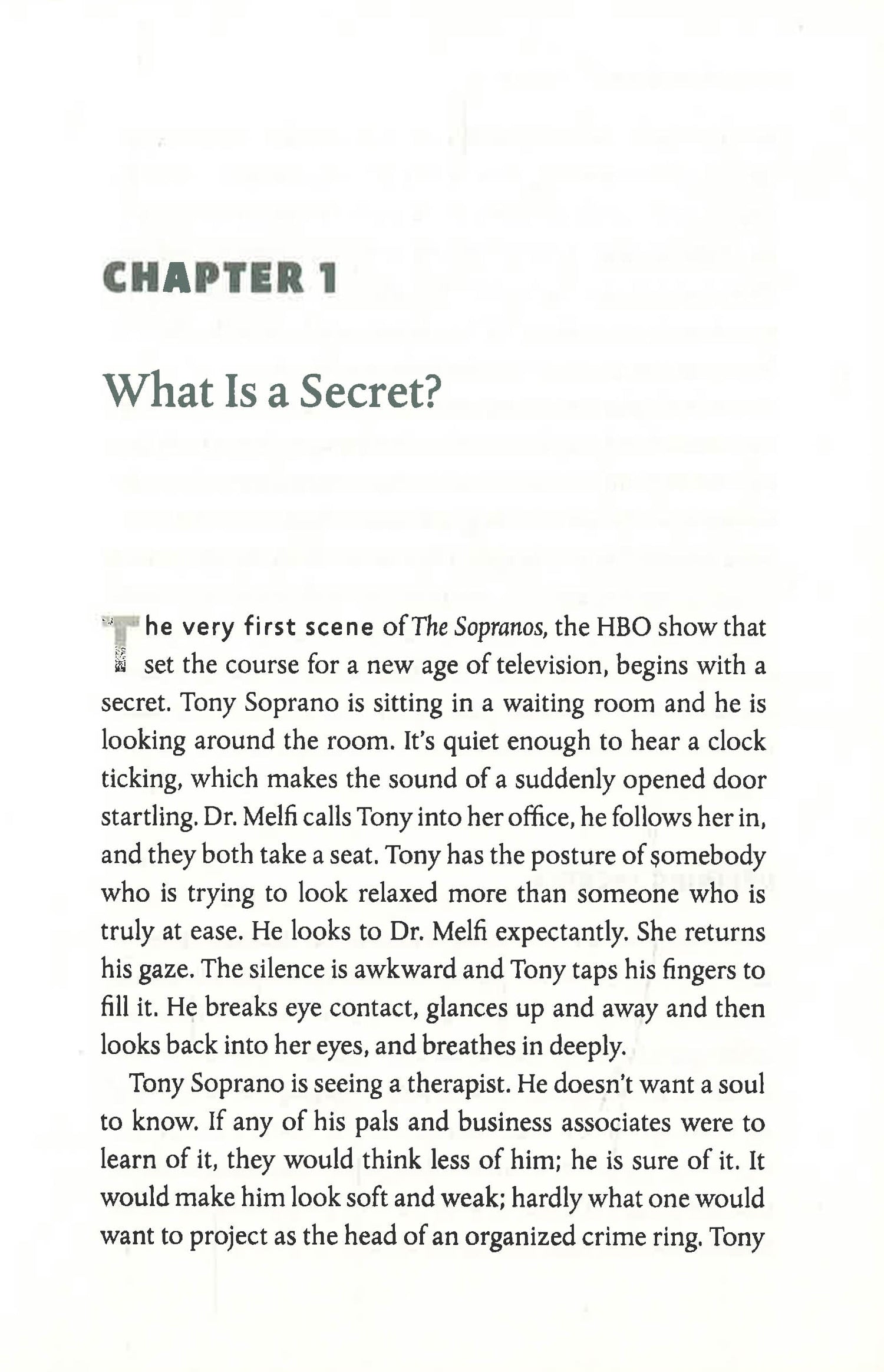THINK OF A SECRET that you’re keeping from others. It shouldn’t take long. Psychologist Michael Slepian finds that, on average, we are keeping as many as thirteen secrets at any given time. His research, involving more than 50,000 participants from around the world, shows that we most frequently keep secrets about lies we’ve told, ambitions, addictions, mental health challenges, hidden relationships, and financial struggles.