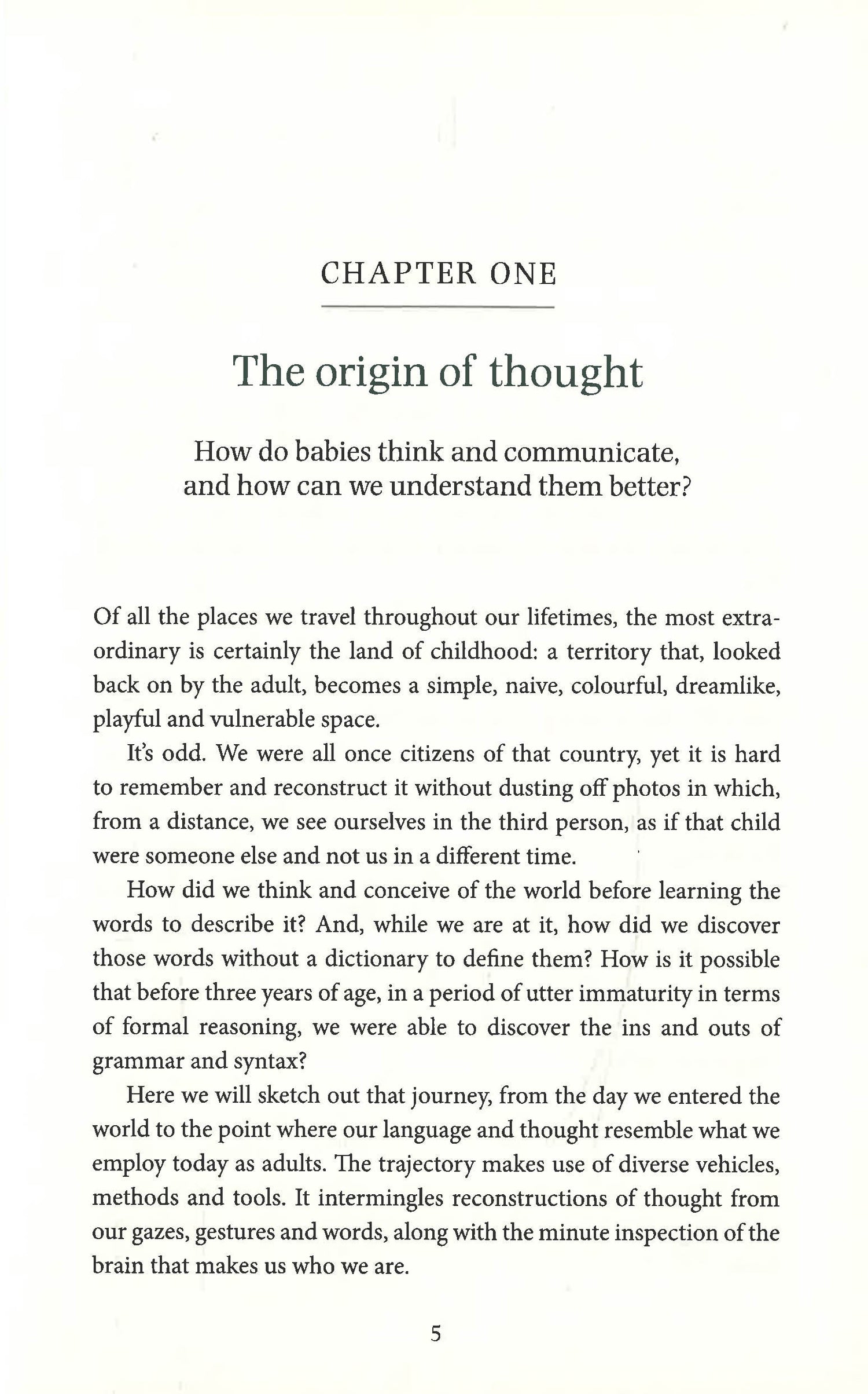 Sigman's ambition is to explain the mind so that we can understand ourselves and others more deeply. He shows how we form ideas during our first days of life, how we give shape to our fundamental decisions, how we dream and imagine, why we feel certain emotions, how the brain transforms and how who we are changes with it. Sigman looks at the development of language, how bilingualism helps us to think and our notions of what is good and fair develop far earlier than we think.