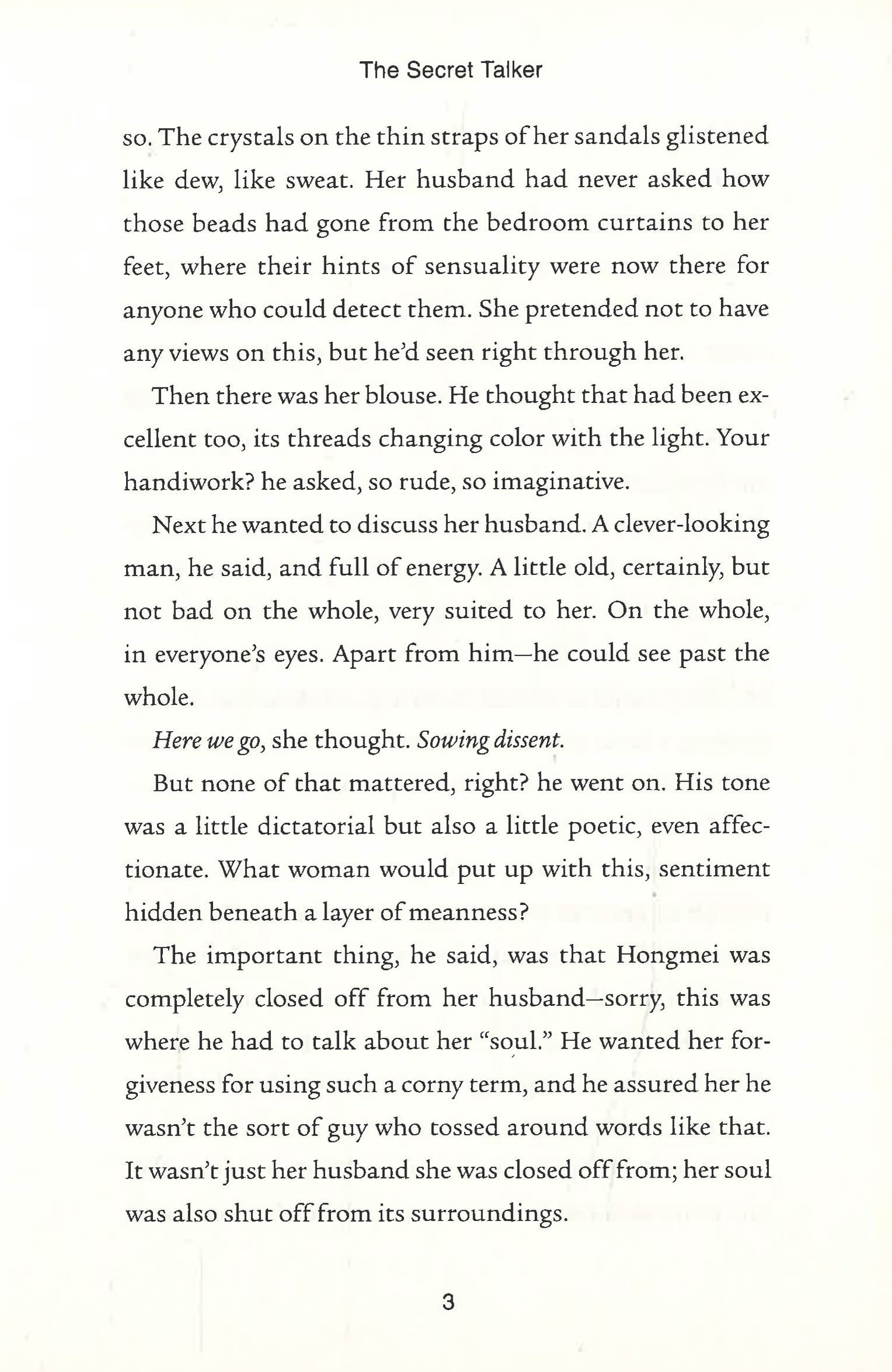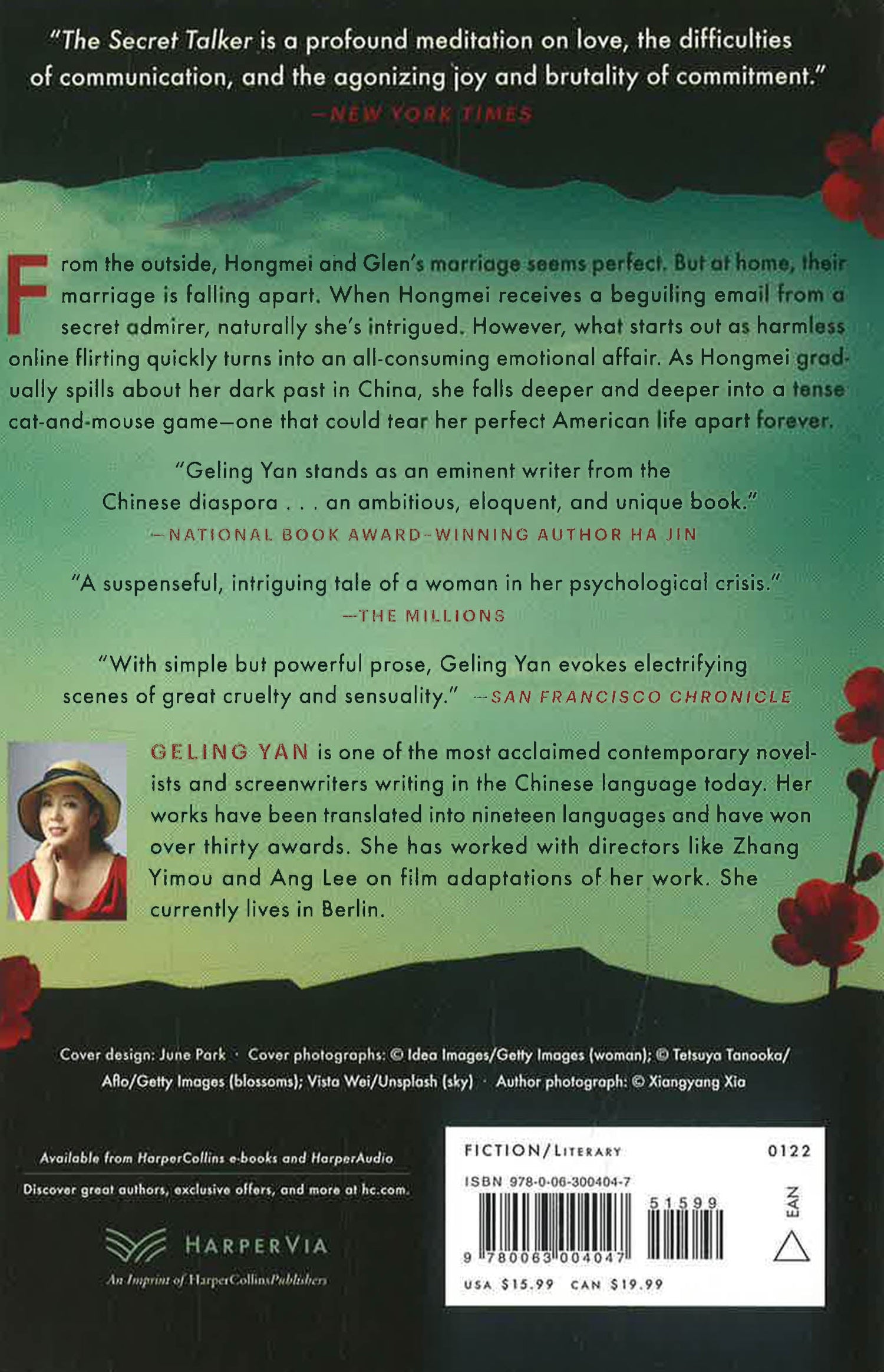 A psychological story at its core, The Secret Talker elegantly examines how repressed desire and simmering silence can upend even the most idyllic marriage. As Hongmei pursues her stalker, her identity and agency come into question, and the chase curveballs into a captivating journey of self-actualization. Yan Geling pierces the human psyche to reveal devastating and emotional truths – and an ending that will leave readers speechless.