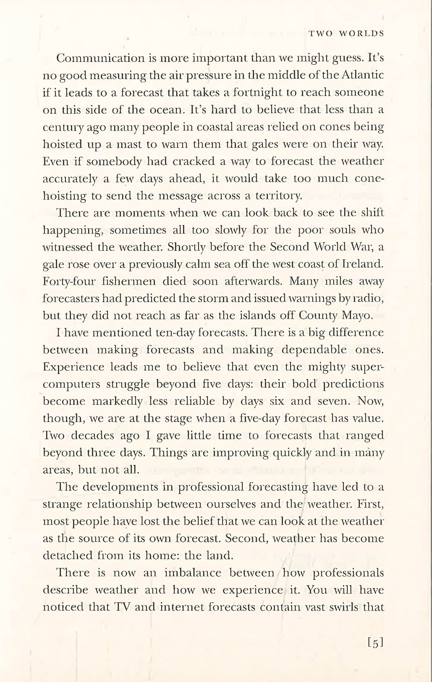 In The Secret World of Weather you'll discover the simple rules that explain the weather signs. And you'll learn rare skills that enhance every minute you spend outdoors, whether you are in a town, on a beach or in a wilder spot.