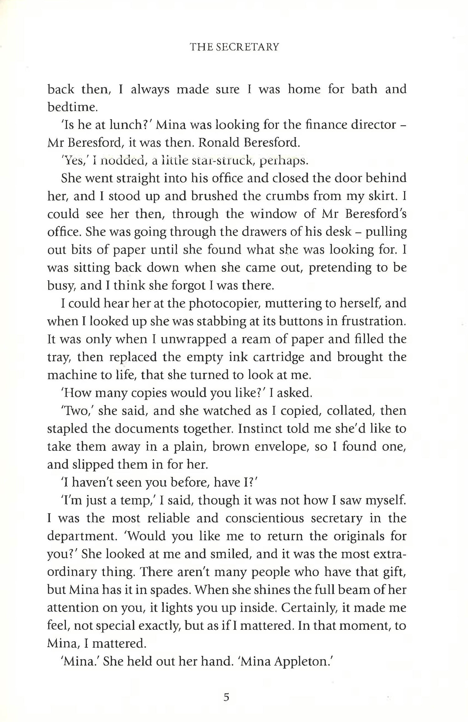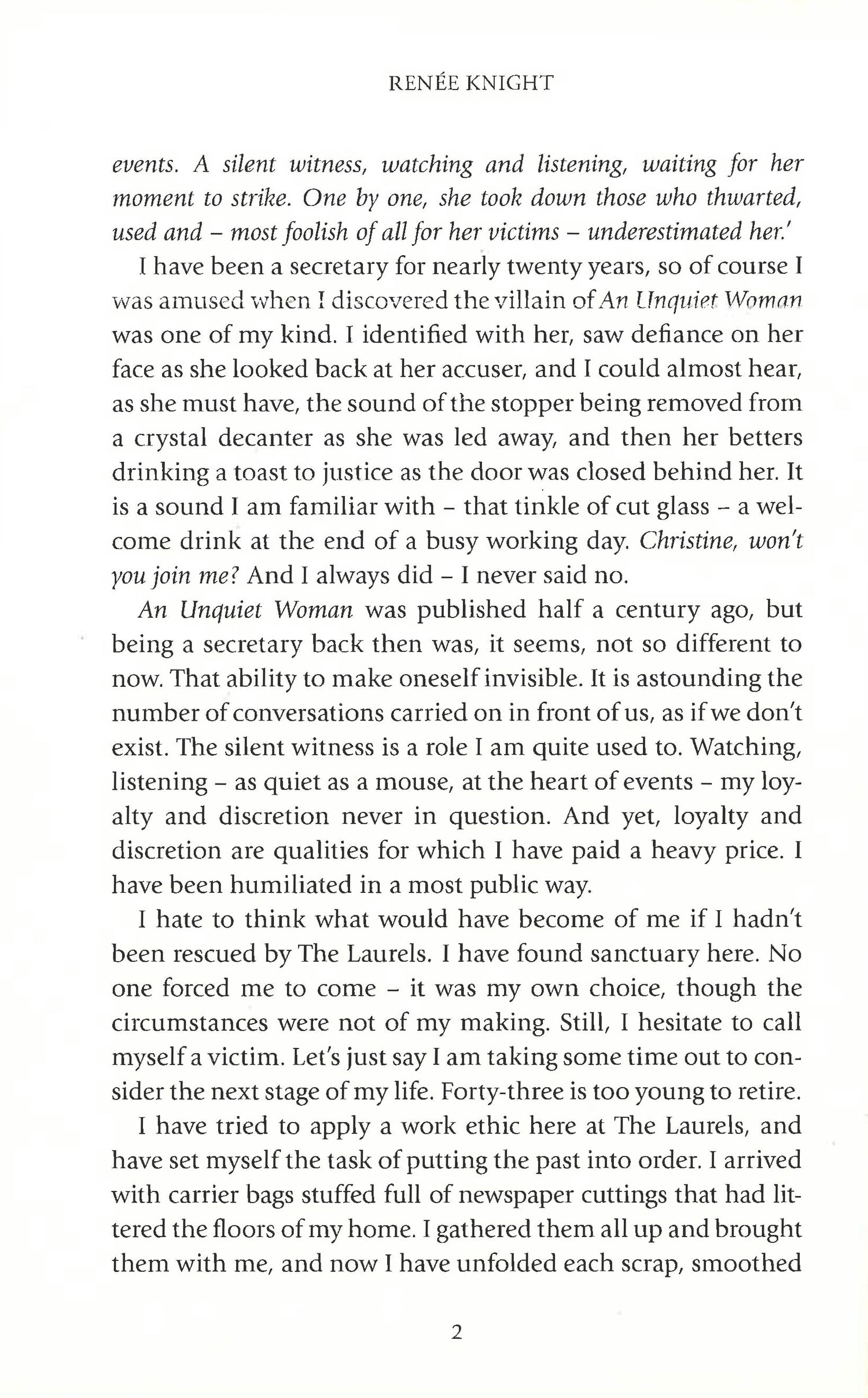 From her first day as Personal Assistant to the celebrated Mina Appleton, Christine Butcher understands what is expected of her. Absolute loyalty. Absolute discretion. For twenty years, Christine has been a most devoted servant, a silent witness to everything in Mina’s life. So quiet, you would hardly know she is there.