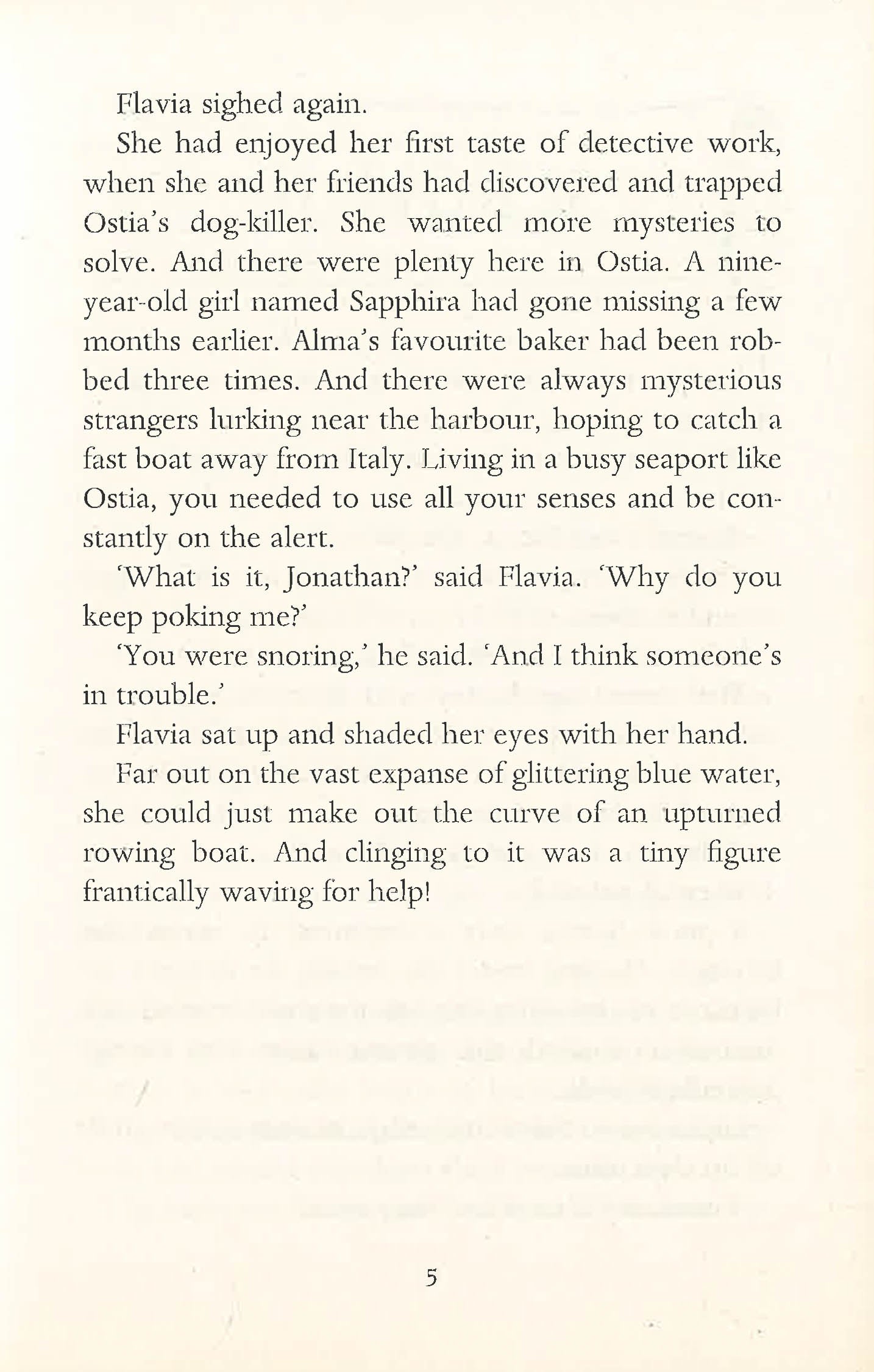 It's the summer of AD 79 and Flavia Gemina and her friends, Jonathan, Nubia and Lupus, set sail for the Bay of Naples where they are going to stay with Flavia's uncle near Pompeii. Once they arrive, they are soon absorbed in a quest to solve a riddle that may lead to treasure. But then tragedy strikes: Mount Vesuvius erupts and the friends must flee for their lives!