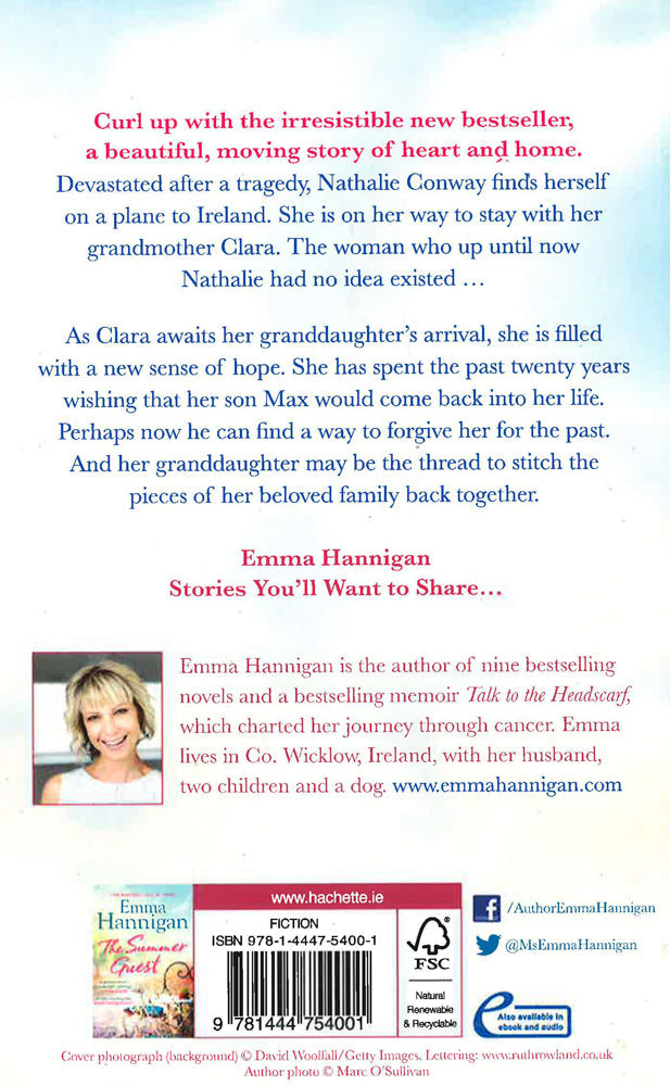 Curl up with the irresistible new bestseller - a beautiful, moving story of heart and homeDevastated after a tragedy, Nathalie Conway finds herself on a plane to Ireland. She is on her way to stay with her grandmother Clara. The woman who up until now Nathalie had no idea existed ...As Clara awaits her granddaughter's arrival, she is filled with a new sense of hope. She has spent the past twenty years wishing that her son Max would come back into her life. Perhaps now he can find a way to forgive her for the past. And her granddaughter may be the thread to stitch the pieces of her beloved family back together.