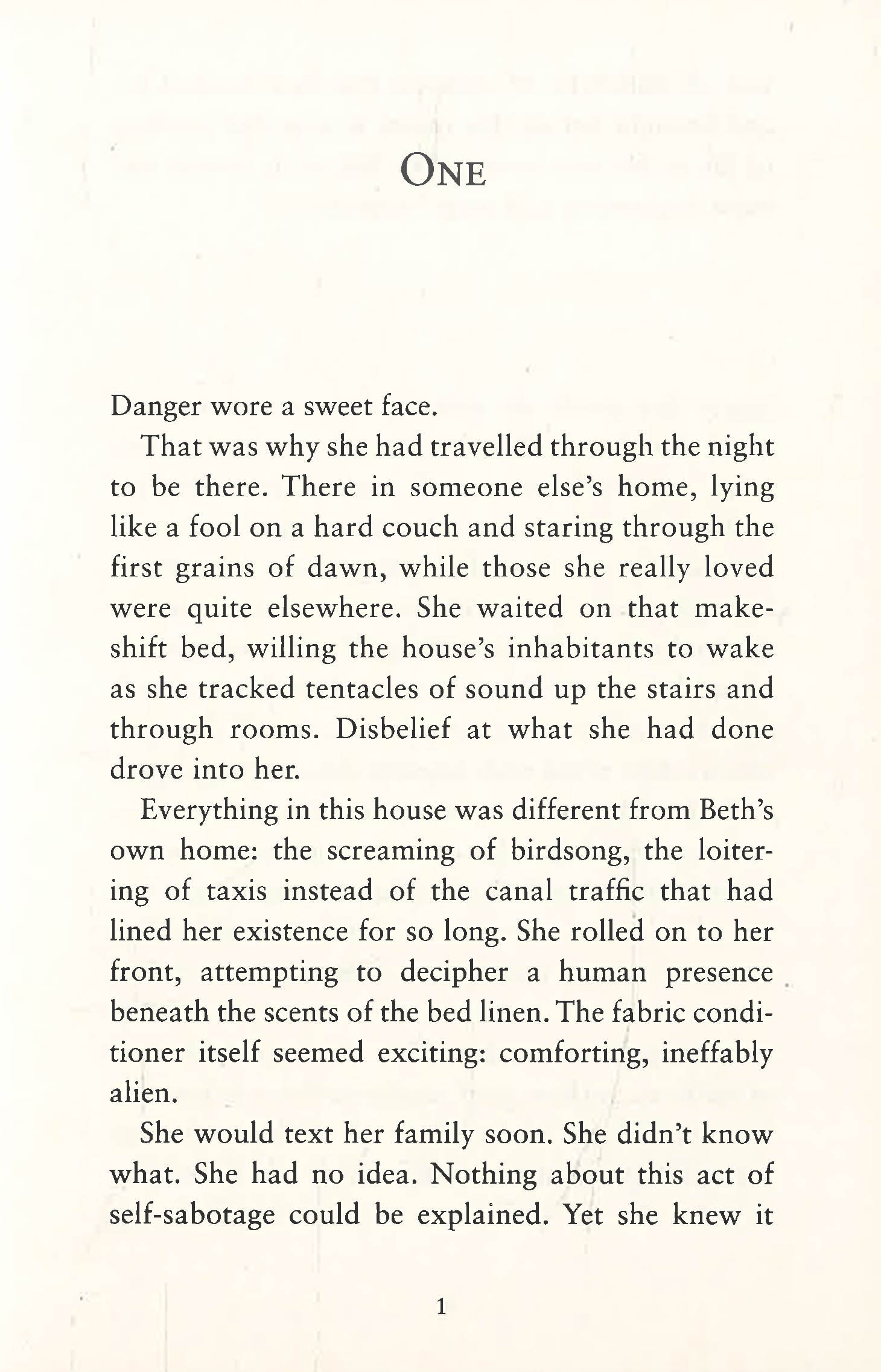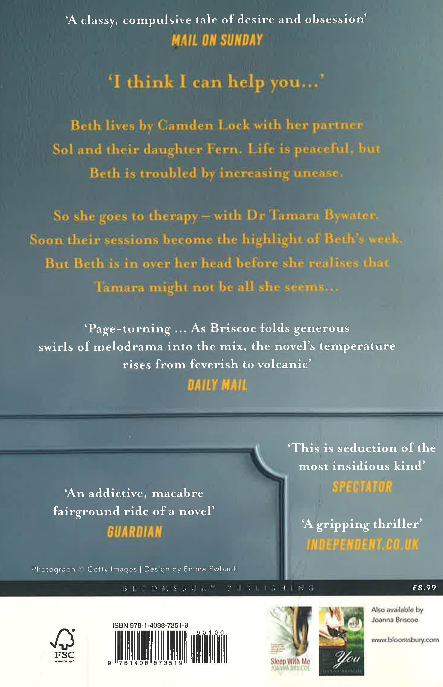 ‘Addictive’ Guardian ‘A febrile, urgent tale’ Sunday Times ‘A sizzling new thriller’ New York Times She knows your mind, she possesses your thoughts. What will she take next? ‘I think I can help you…’ Beth lives by Camden Lock with her partner Sol and their daughter Fern. Life is peaceful, but Beth is troubled by increasing unease. So she goes to therapy – with Dr Tamara Bywater. Soon their sessions become the highlight of Beth’s week. But Beth is in over her head before she realises that Tamara might not be all she seems... ‘A classy, compulsive tale of desire and obsession’ Mail on Sunday ‘An addictive, macabre fairground ride of a novel’ Guardian ‘This is seduction of the most insidious kind’ Spectator