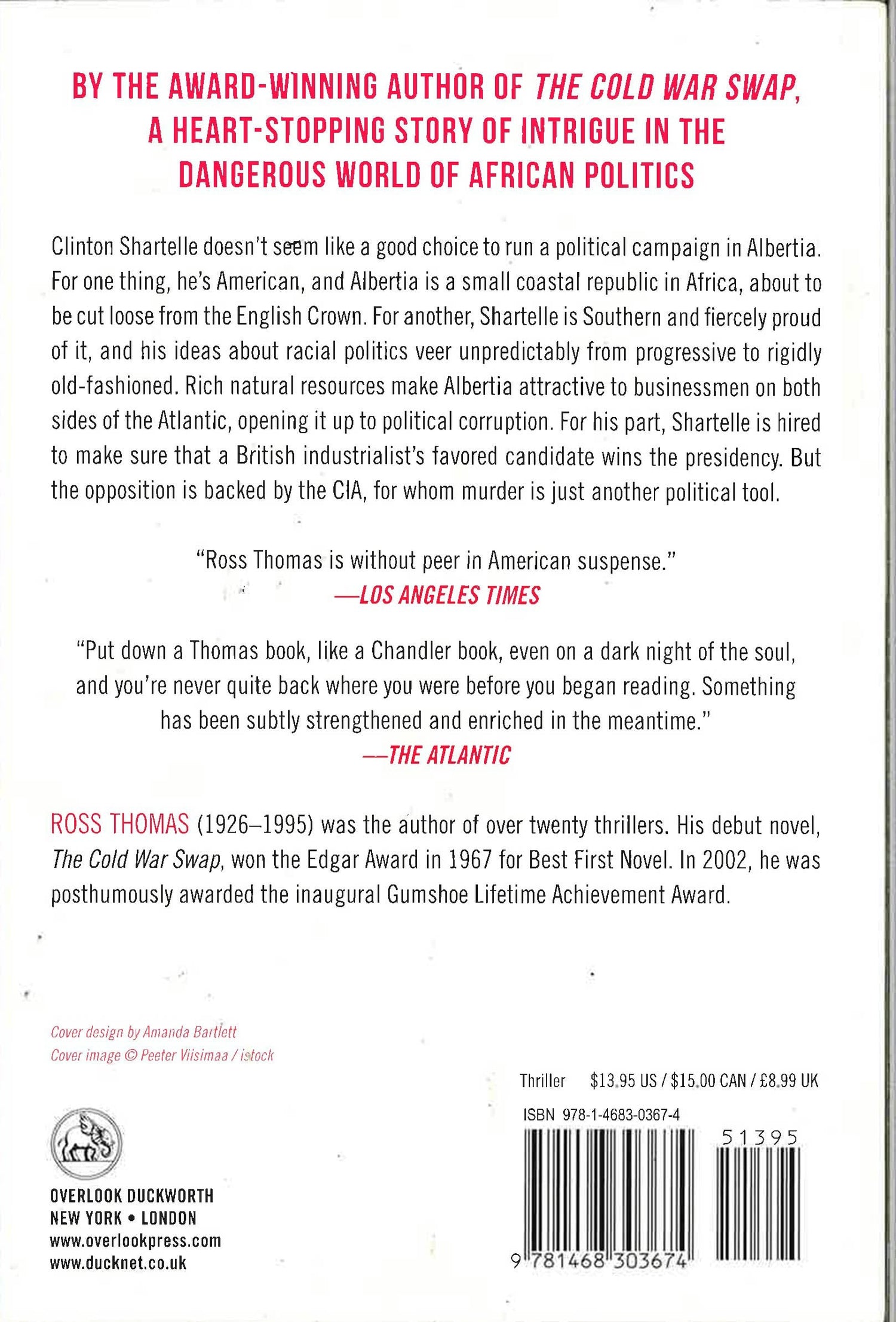 Clinton Shartelle doesn’t seem like a good choice to run a political campaign in Albertia. For one thing, he’s American, and Albertia is a small coastal republic in Africa, about to be cut loose from the English Crown. For another, Shartelle is Southern and fiercely proud of it, and his ideas about racial politics veer unpredictably from progressive to rigidly old-fashioned. But Shartelle is the best, and the political future of Albertia is too important to be left to anyone else. If history is any indication, this first fair election will probably be the country’s last. Rich natural resources make it attractive to businessmen on both sides of the Atlantic, opening Albertia up to political corruption. For his part, Shartelle is hired to make sure that a British industrialist’s favored candidate wins the presidency. But the opposition is backed by the CIA, for whom murder is just another political tool.