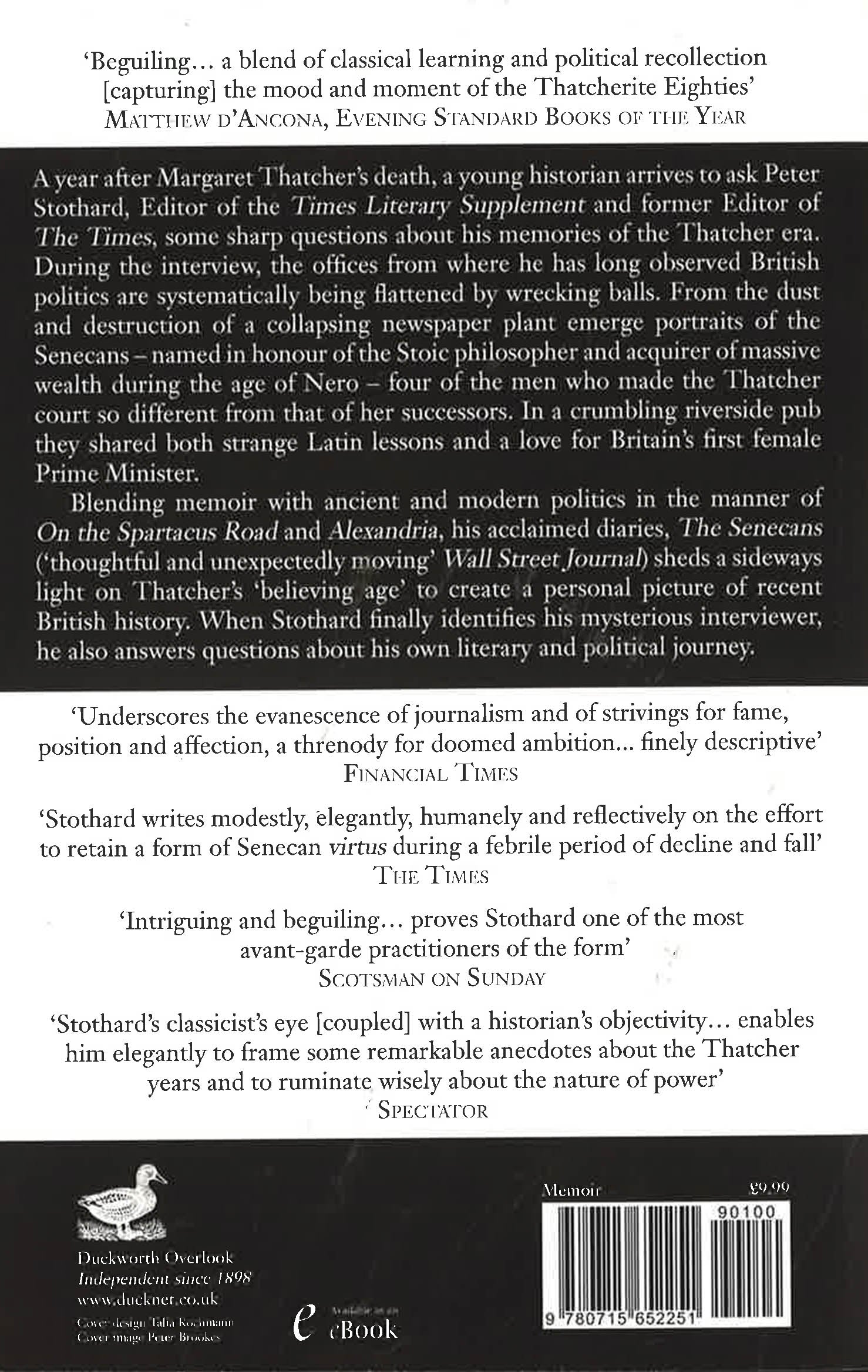 The Senecans took their name from their taste for the work of Seneca, a philosopher, courtier and acquirer of massive wealth during the age of Emperor Nero. Blending memoir with ancient and modern politics in the manner of his acclaimed diaries On the Spartacus Road and Alexandria, Stothard sheds a sideways light on recent history. In finally identifying his interviewer he answers questions about his own literary and political journey.