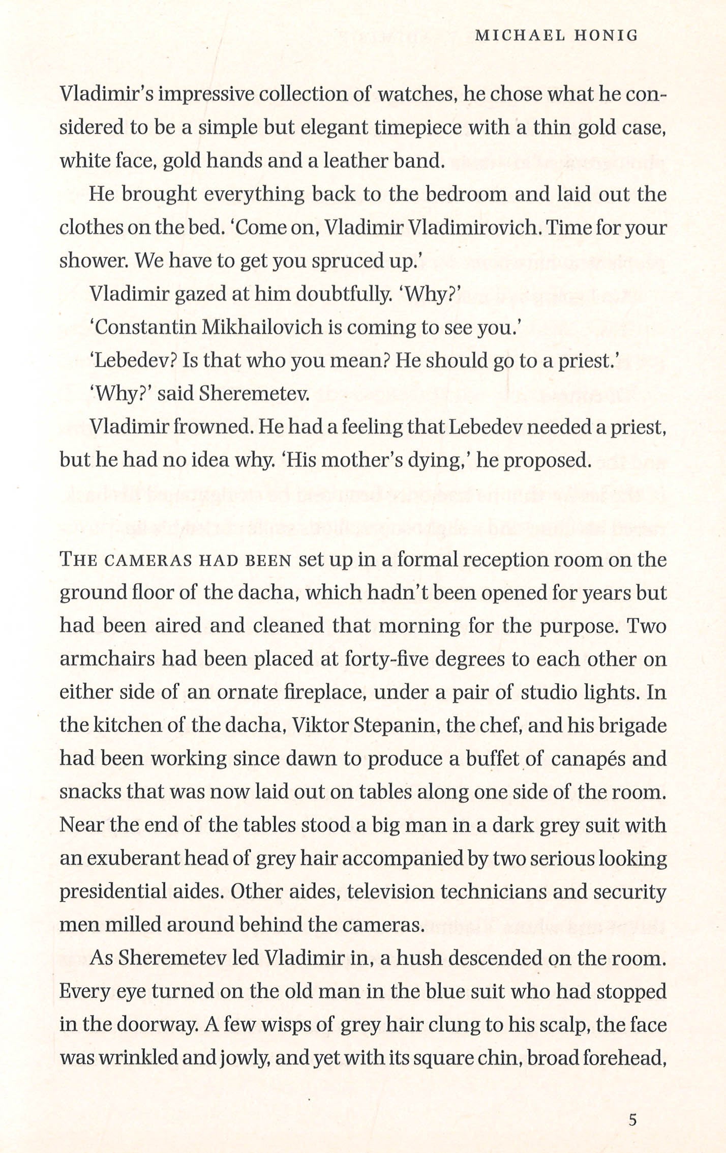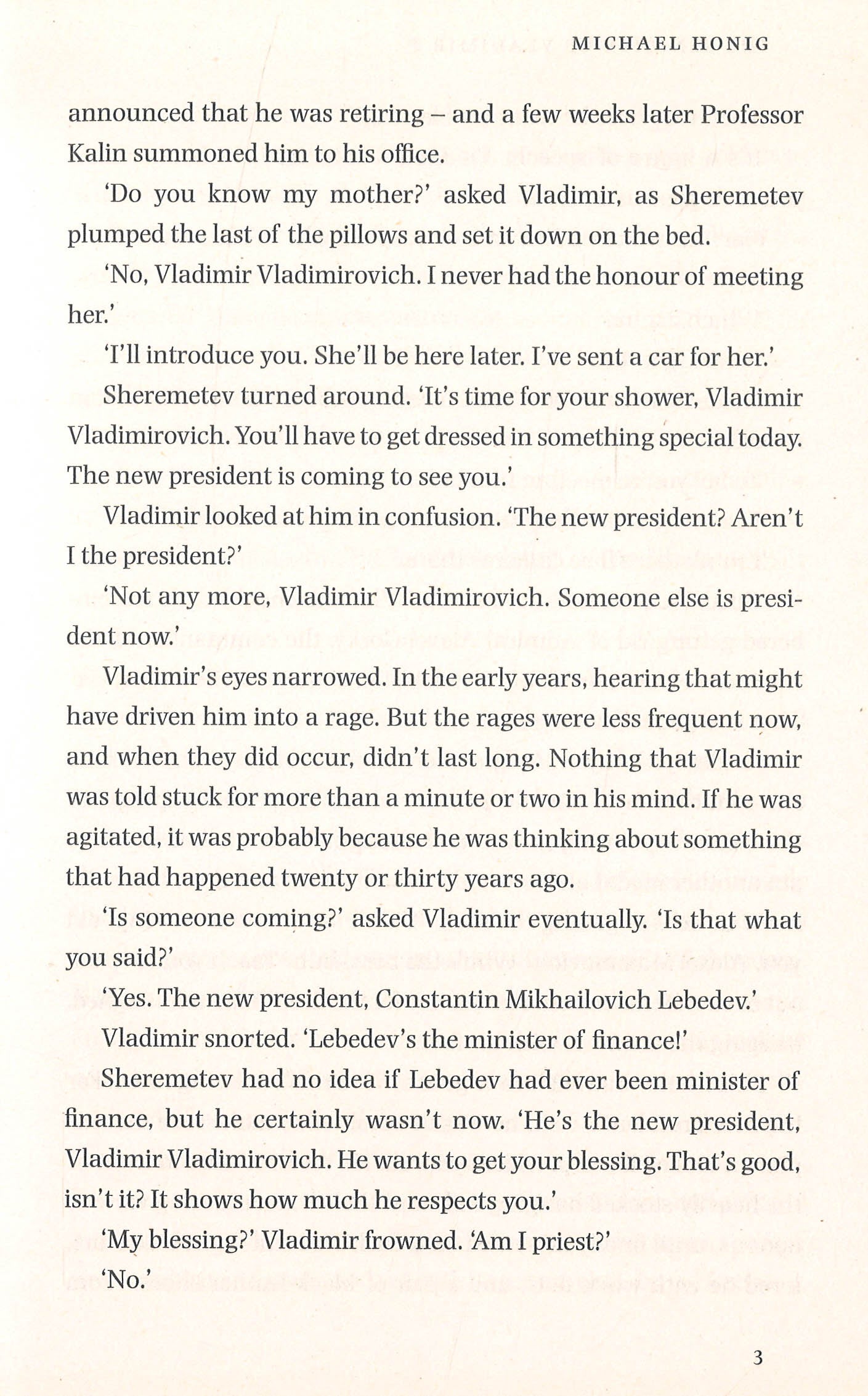 Ferociously readable and very, very funny, The Senility of Vladimir P is a vodka-soaked tragicomedy of bribes, backhanders and an elderly Vladimir Putin going catastrophically awry... As a former president of Russia loses his marbles, those around him get down to losing their morals.Former Russian president, Vladimir P, is going senile, marooned in a world of memories from his years in power. To get him out of the way, he has been exiled to his luxury dacha, where he is served by a coterie of bickering house staff. Only Sheremetev, the guileless nurse charged with Vladimir's round-the-clock care, is unaware that everyone else is busily using every means at their disposal to skim money from their employer's inexhaustible riches. But when the nurse suddenly needs to find cash for a bribe or see his nephew rot in jail, the dacha's chef lets him in on the secret world of 'commissions' going on all around him. Yet surely Sheremetev wouldn't think to steal from his ailing patient? And surely, in the upstanding modern Russia that Vladimir P created, no one would actually let him...