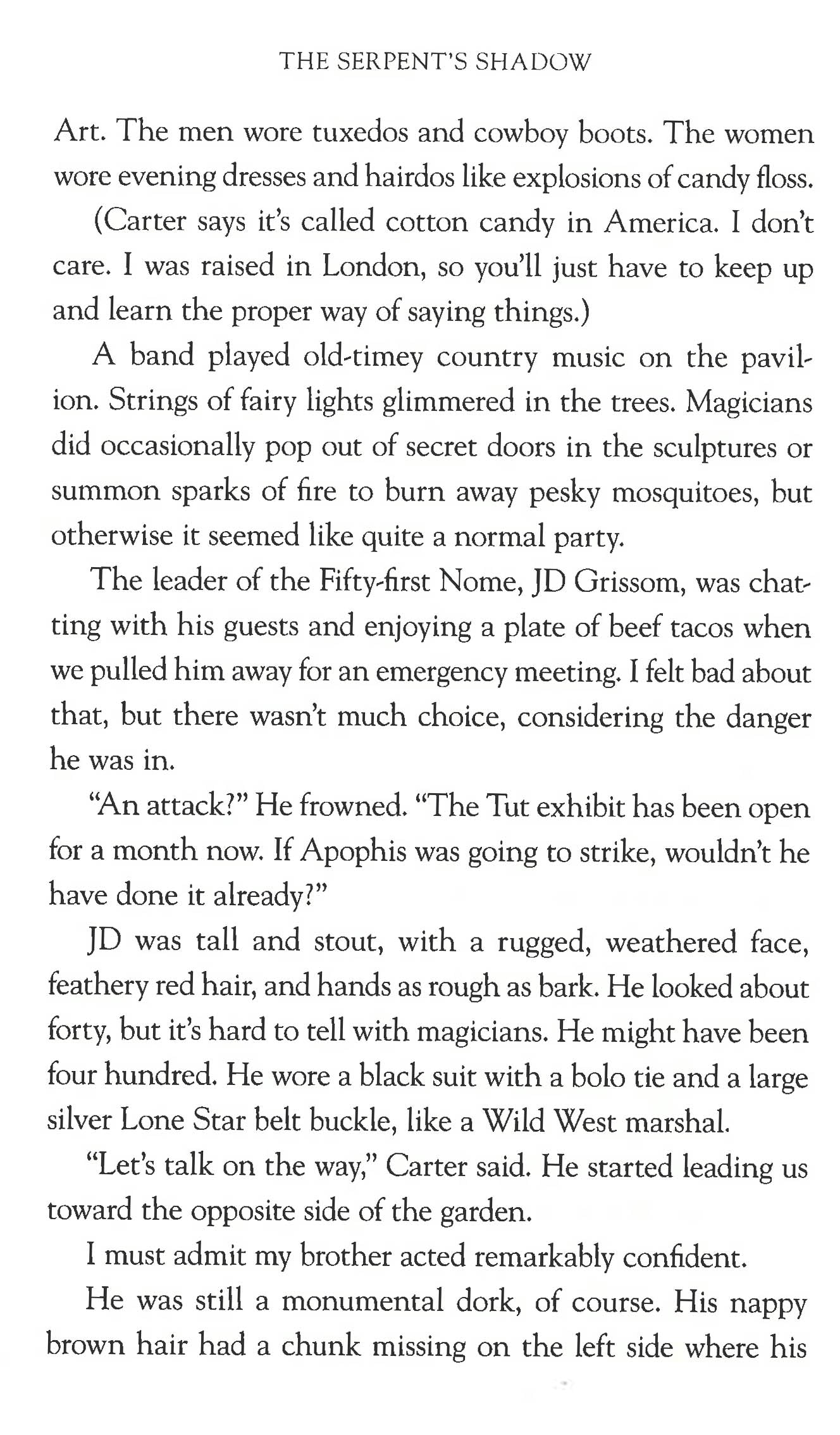 He's b-a-a-ack! Despite their best efforts, Carter and Sadie Kane can't seem to keep Apophis, the chaos snake, down. Now Apophis is threatening to plunge the world into eternal darkness, and the Kanes are faced with the impossible task of having to destroy him once and for all. Unfortunately, the magicians of the House of Life are on the brink of civil war, the gods are divided, and the young initiates of Brooklyn House stand almost alone against the forces of chaos. The Kanes' only hope is an ancient spell that might turn the serpent's own shadow into a weapon, but the magic has been lost for a millennia. To find the answer they need, the Kanes must rely on the murderous ghost of a powerful magician who might be able to lead them to the serpent's shadow . . . or might lead them to their deaths in the depths of the underworld. Nothing less than the mortal world is at stake when the Kane family fulfills its destiny in this thrilling conclusion to the Kane Chronicles.