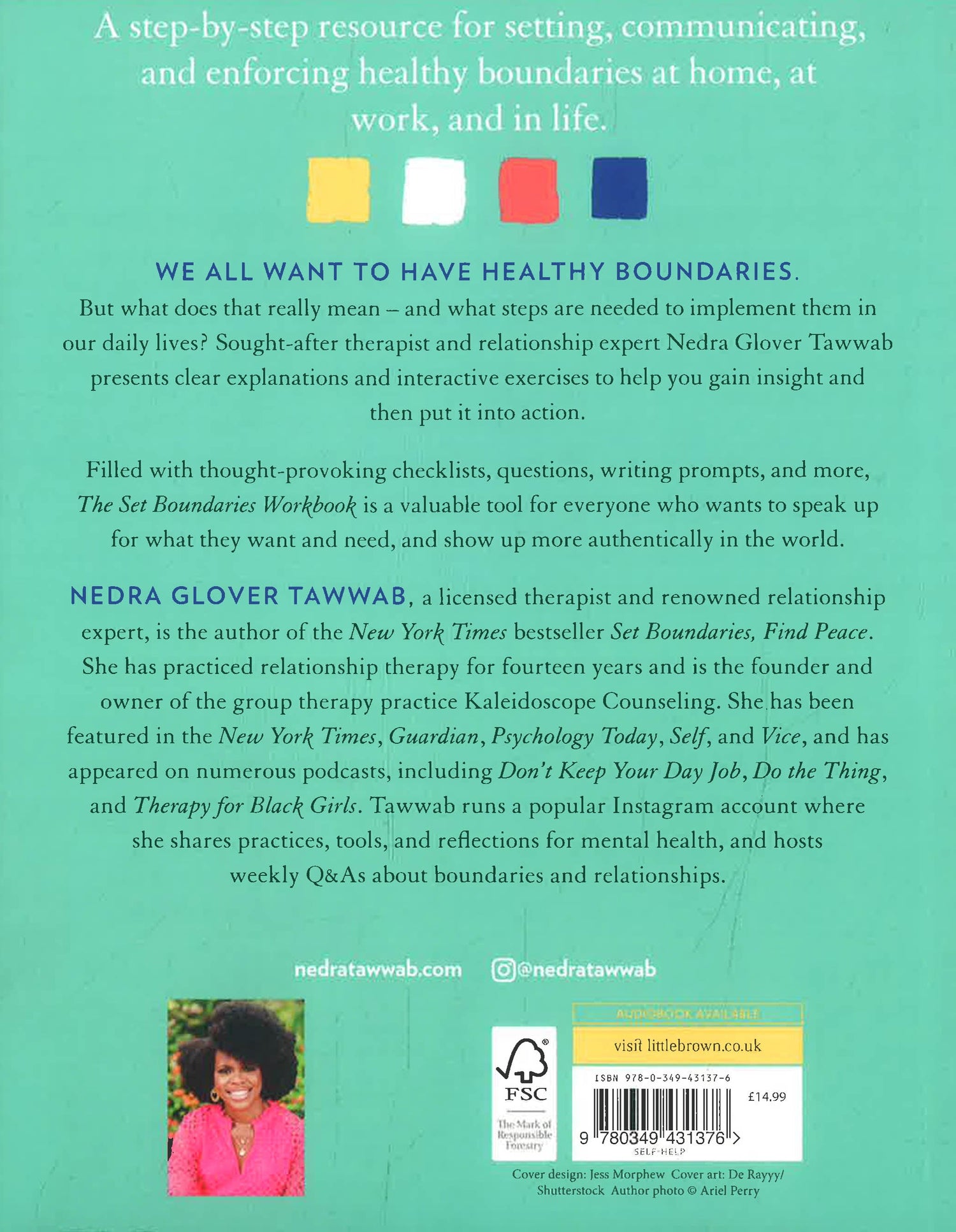We all want to have healthy boundaries. But what does that really mean - and what steps are needed to implement them in our daily lives? Sought-after therapist relationship expert Nedra Glover Tawwab presents clear explanations and interactive exercises to help you gain insight and then put it into action. Filled with thought-provoking checklists, questions, writing prompts, and more, THE SET BOUNDARIES WORKBOOK is a valuable tool for everyone who wants to speak up for what they want and need, and show up more authentically in the world.